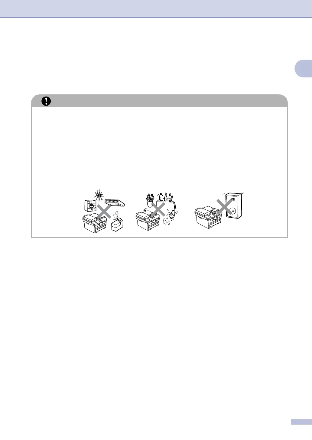 ■ Do not place the machine near heaters, air conditioners, water, chemicals, or refrigerators.