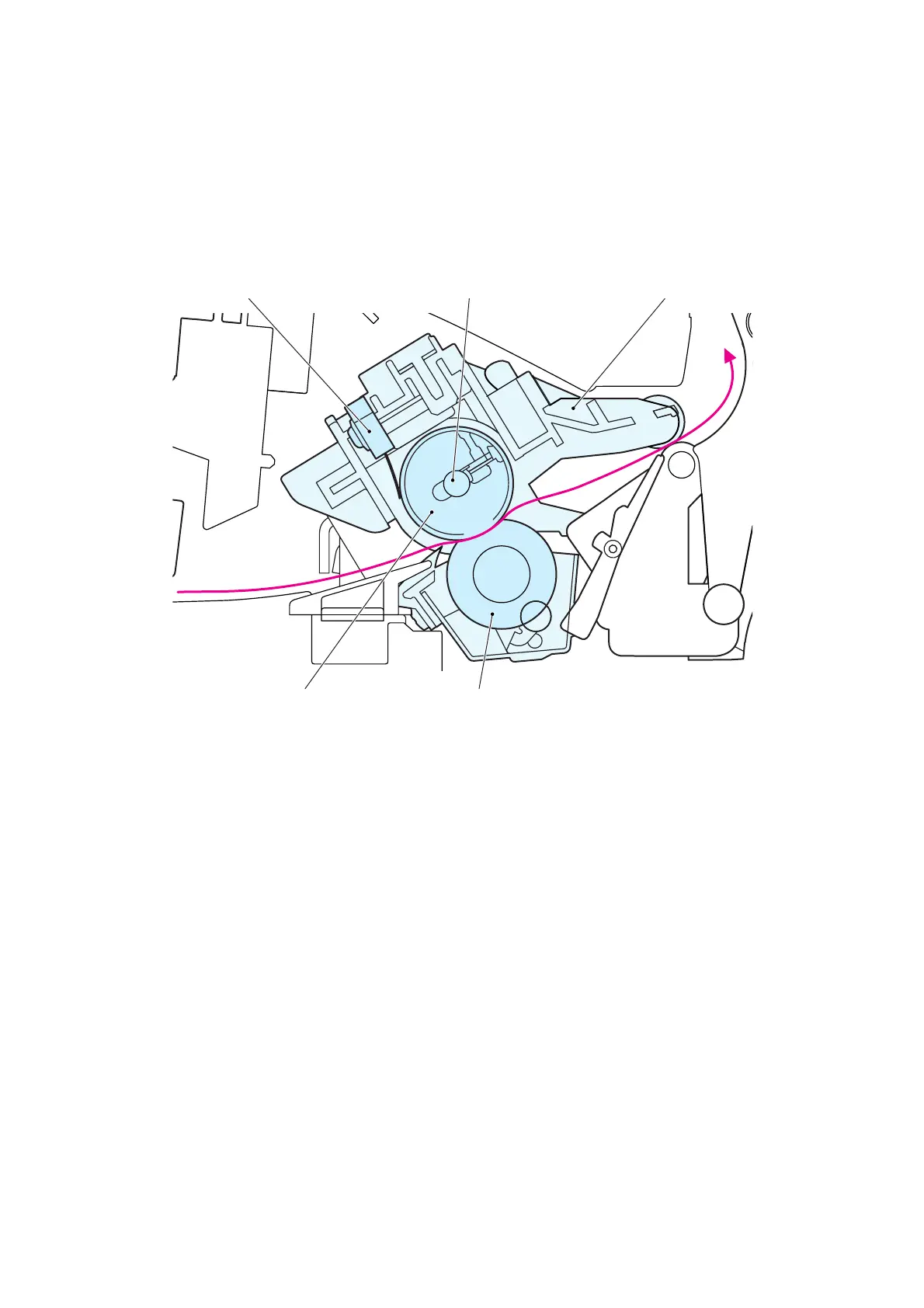 The toner transferred on to the paper passes between the heat roller and the pressure roller