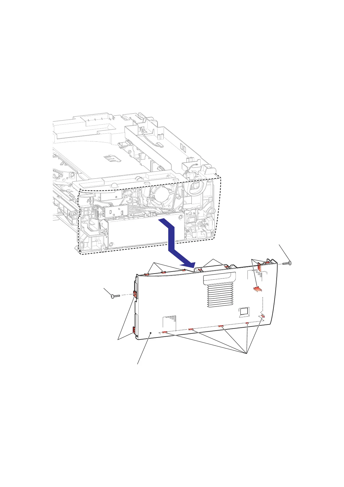 (2) Release the Hook to remove the Side cover R ASSY from the Main body.