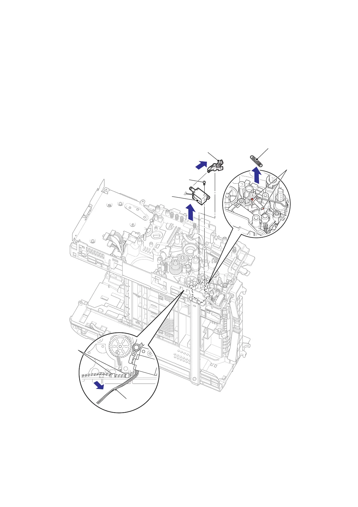 (5) Remove the Registration solenoid lever spring from the Main body and the Registration