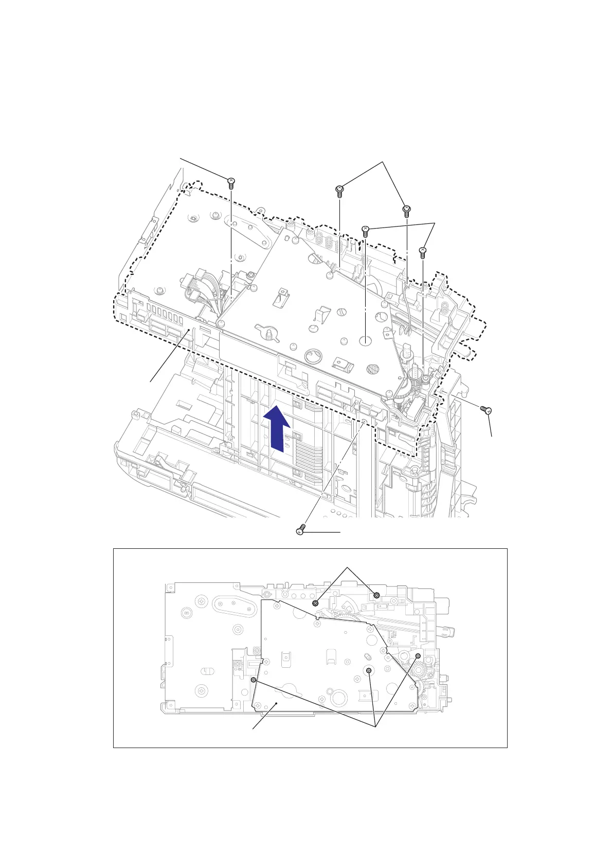 Ensure you remove the Main frame L ASSY with the DEV joint link pulled out (as shown).