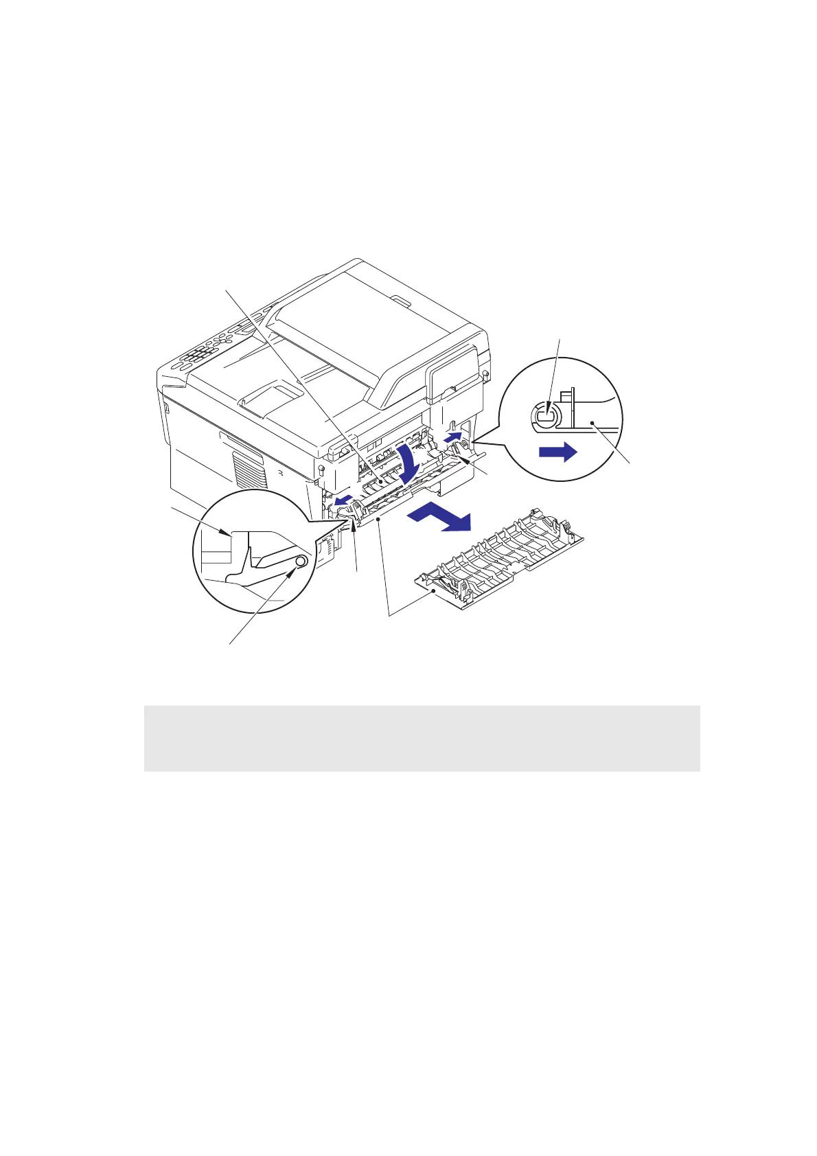 (2) Push the both side ribs of the back cover to the direction of the arrow 2, and release the
