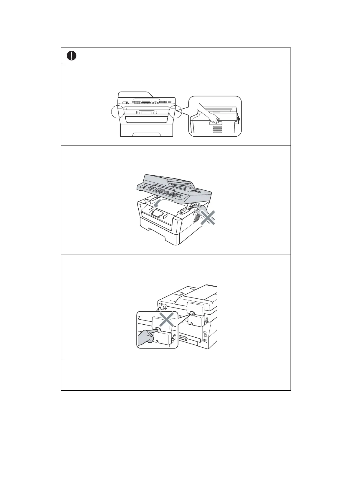 To prevent injuries, be careful not to put your fingers in the areas shown in the