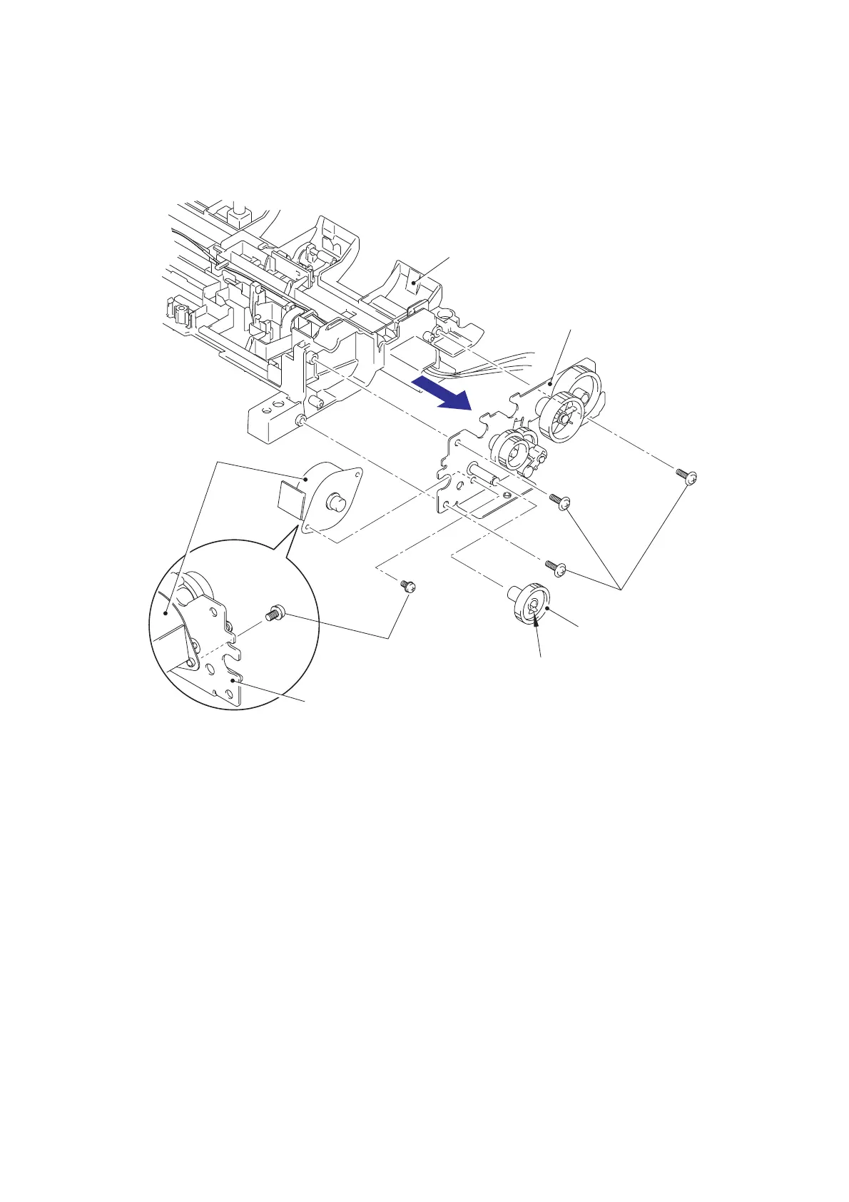 (5) Remove the screw pan (S/P washer) M3x6 screw, and remove the ADF motor.