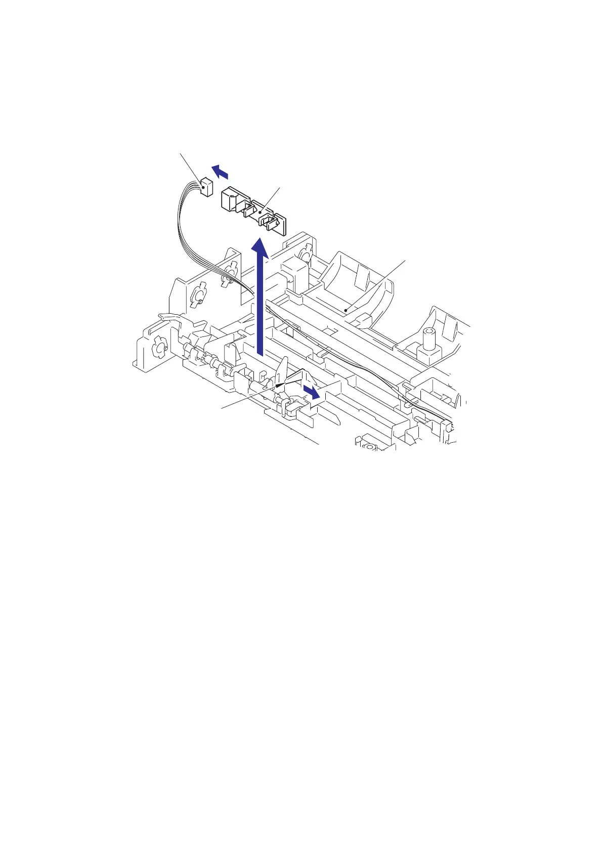 (3) Remove the document detection/ADF cover open sensor PCB ASSY while pushing the rib.