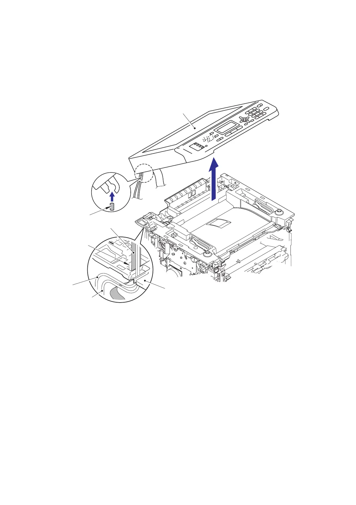 (1) Open the document scanner unit, and remove the harness from the hole, and remove