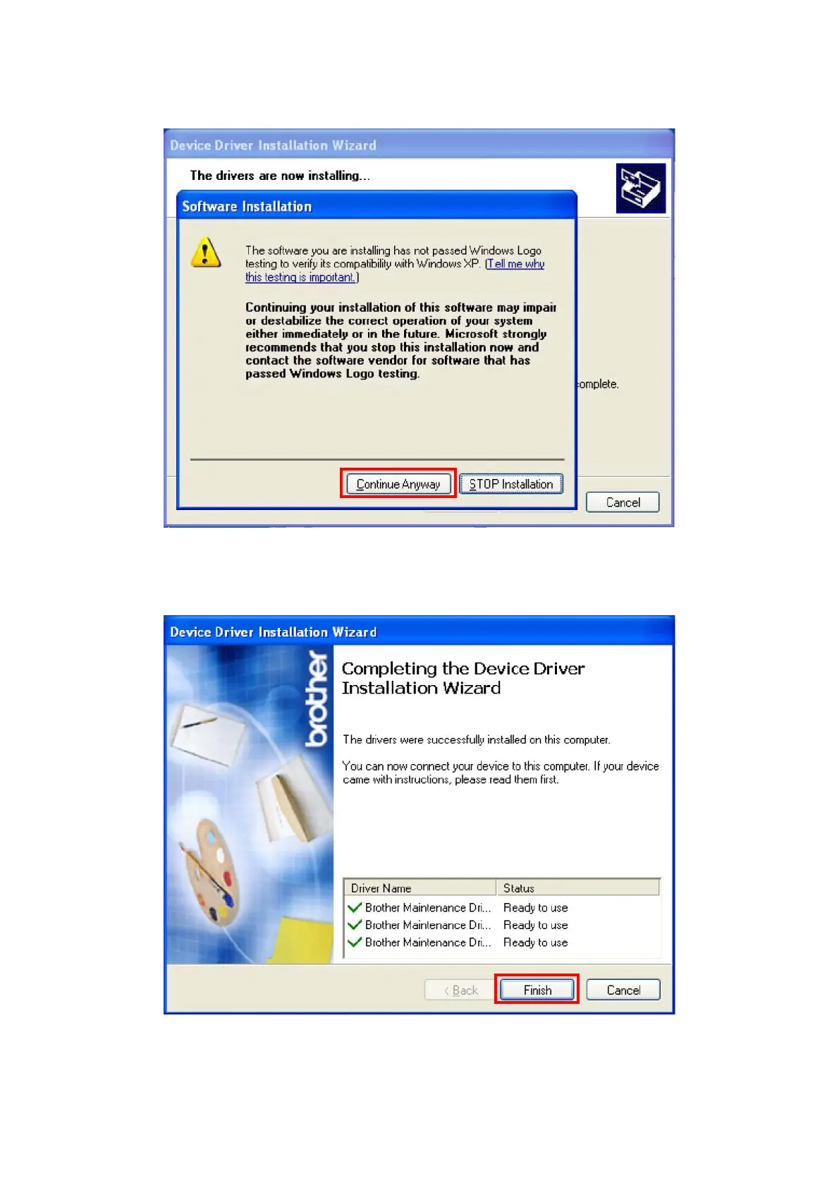 (6) If the device driver is successfully installed, the following message screen appears. Click