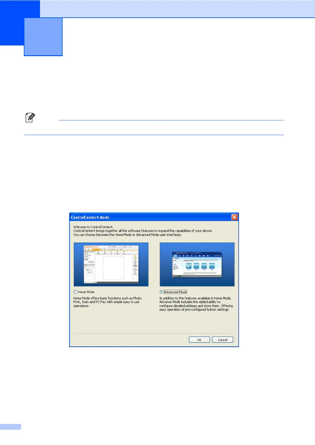 c Choose Home Mode or Advanced Mode before you use ControlCenter4.