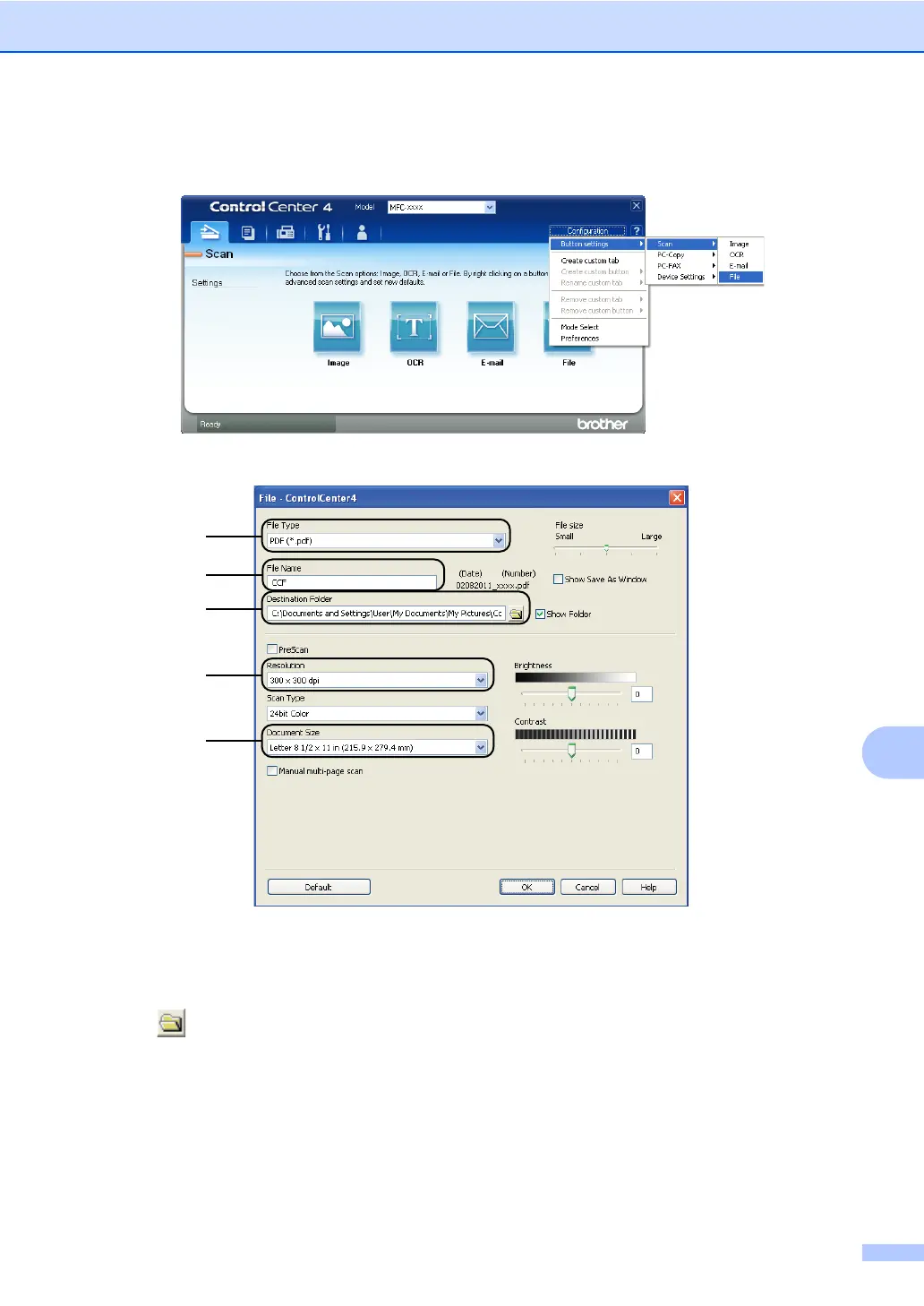 Click Configuration, and then select Button settings, Scan and File.