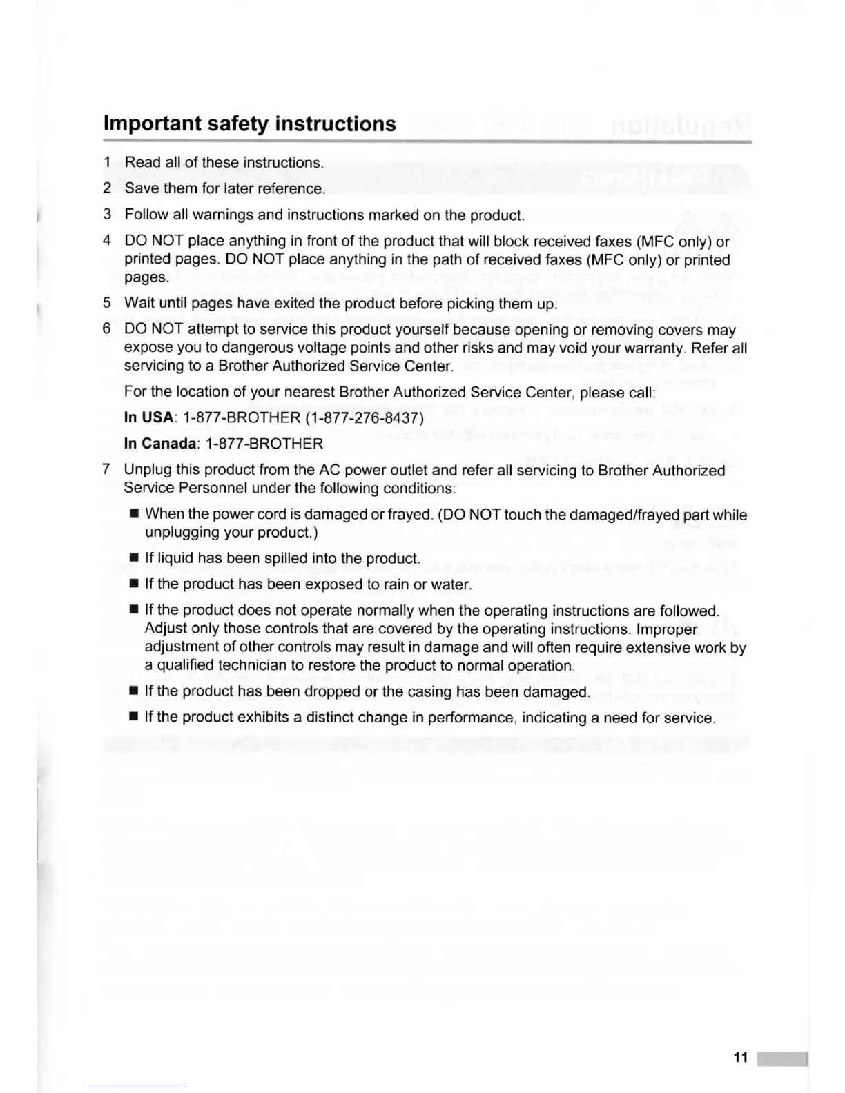 Unplug this product from the AC power outlet and refer all servicing to Brother Authorized