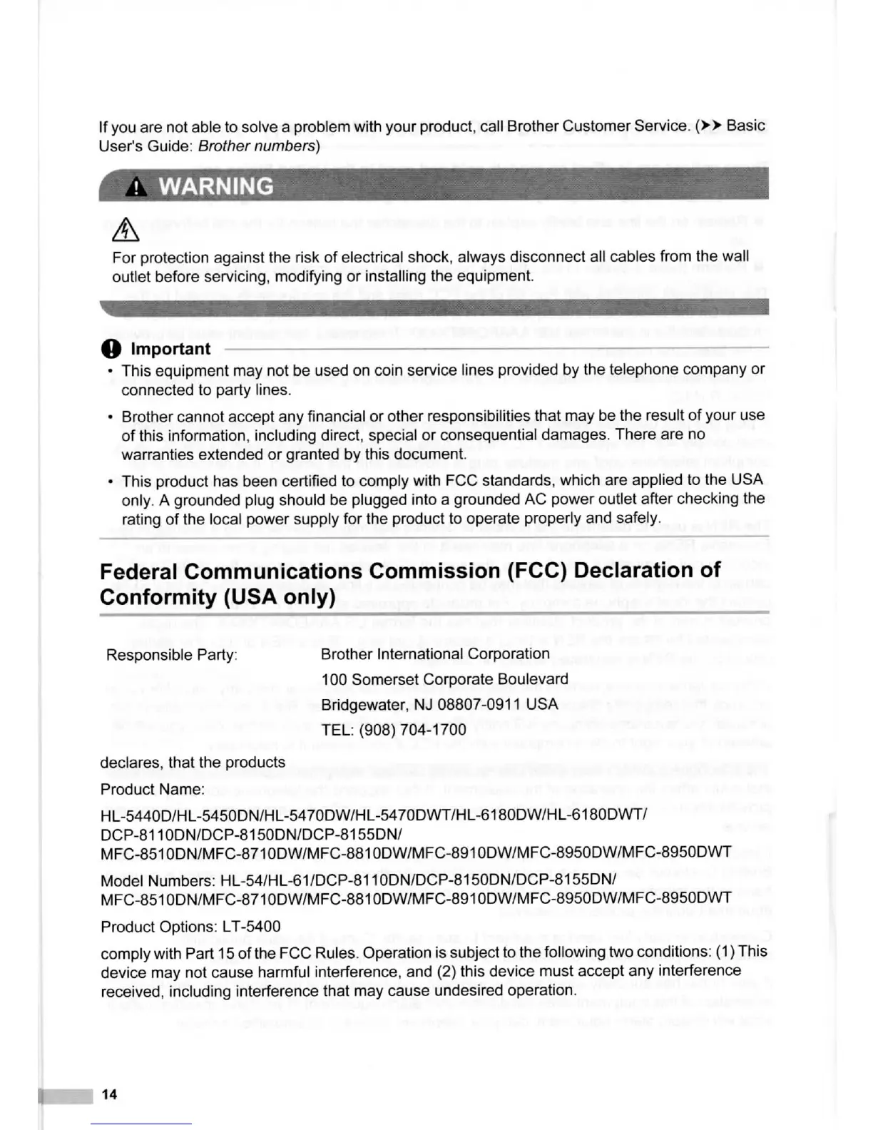Brother MFC-8710DW - Federal Communications Commission (FCC) Declaration of Conformity (USA Only)