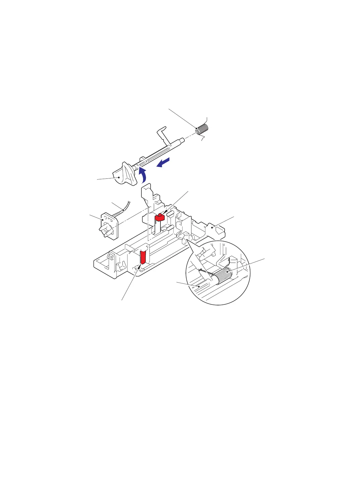 (4) Remove the T1 paper feed actuator spring from the T1 paper feed actuator.