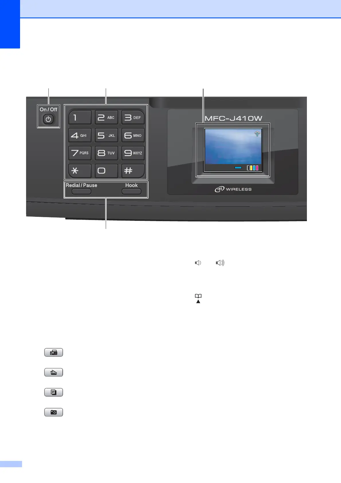 The MFC-J220, MFC-J265W and MFC-J410W have the same control panel keys.