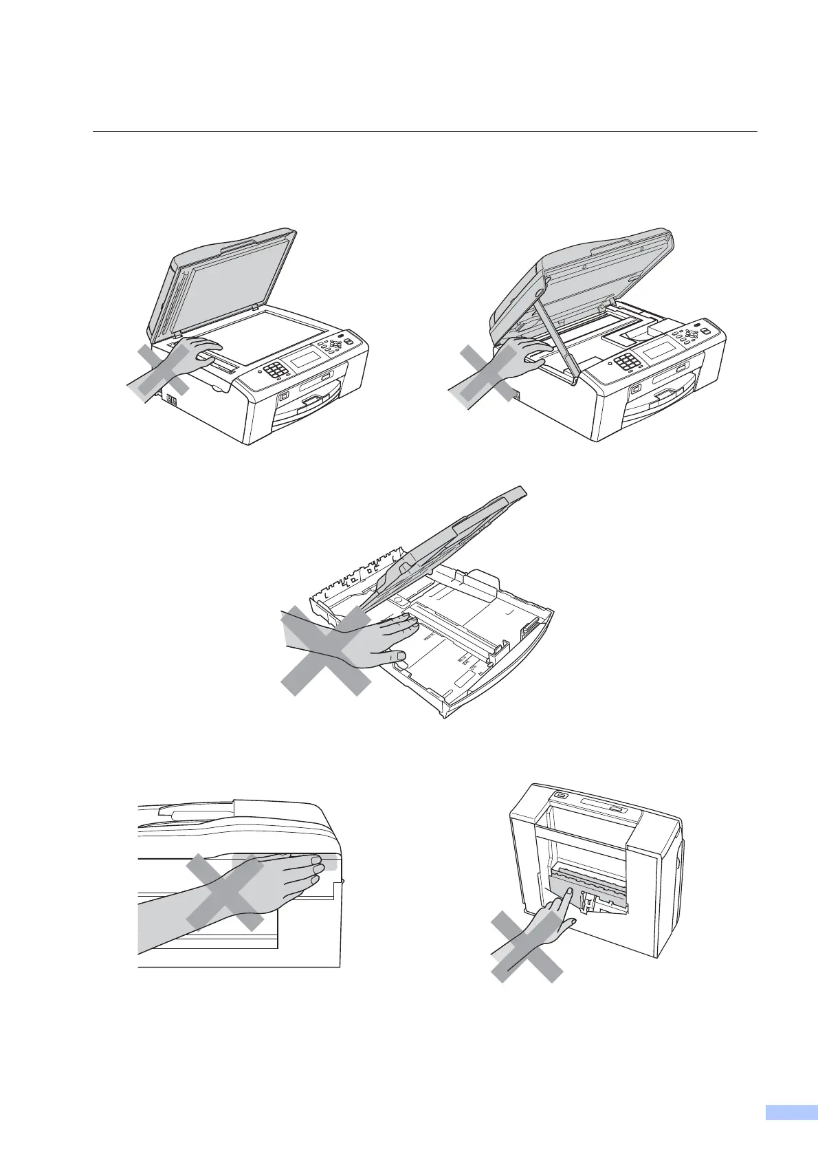 Some areas of the machine can cause injury if covers (shaded) are closed with force. Take care