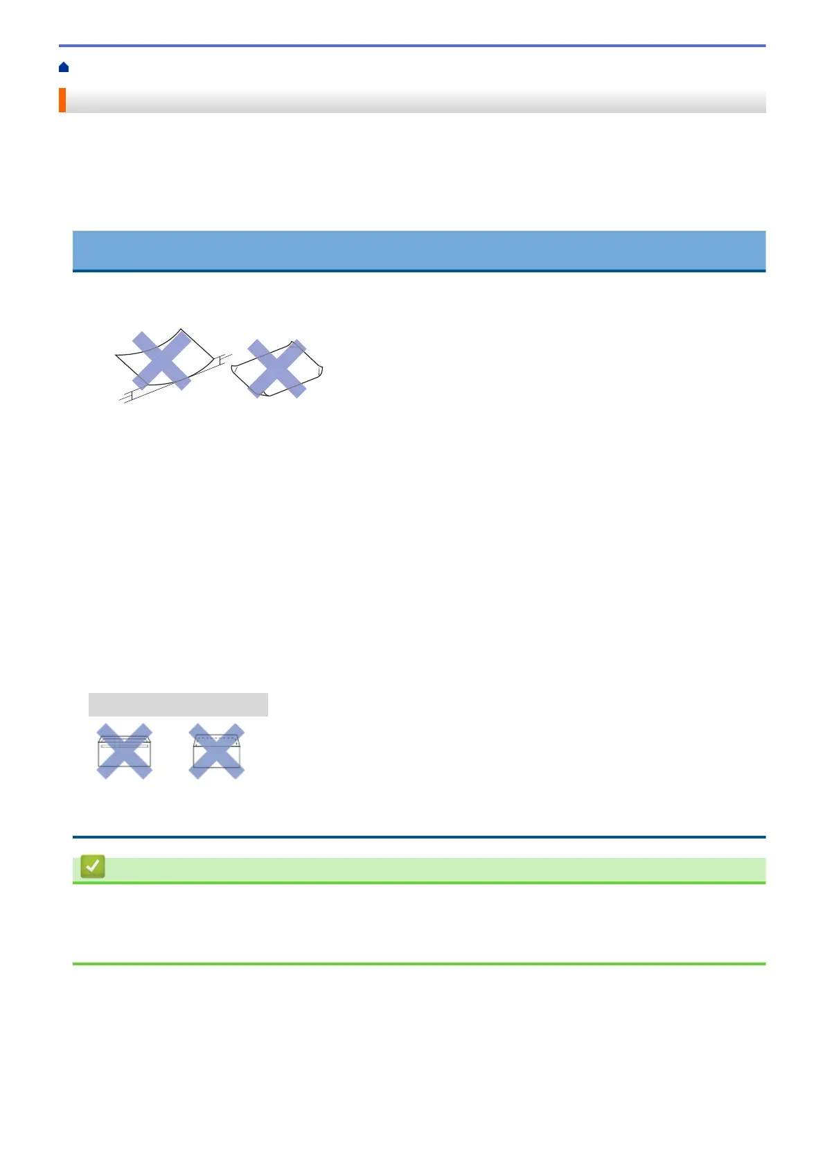 You may experience paper feed problems caused by the thickness, size and flap shape of the envelopes you