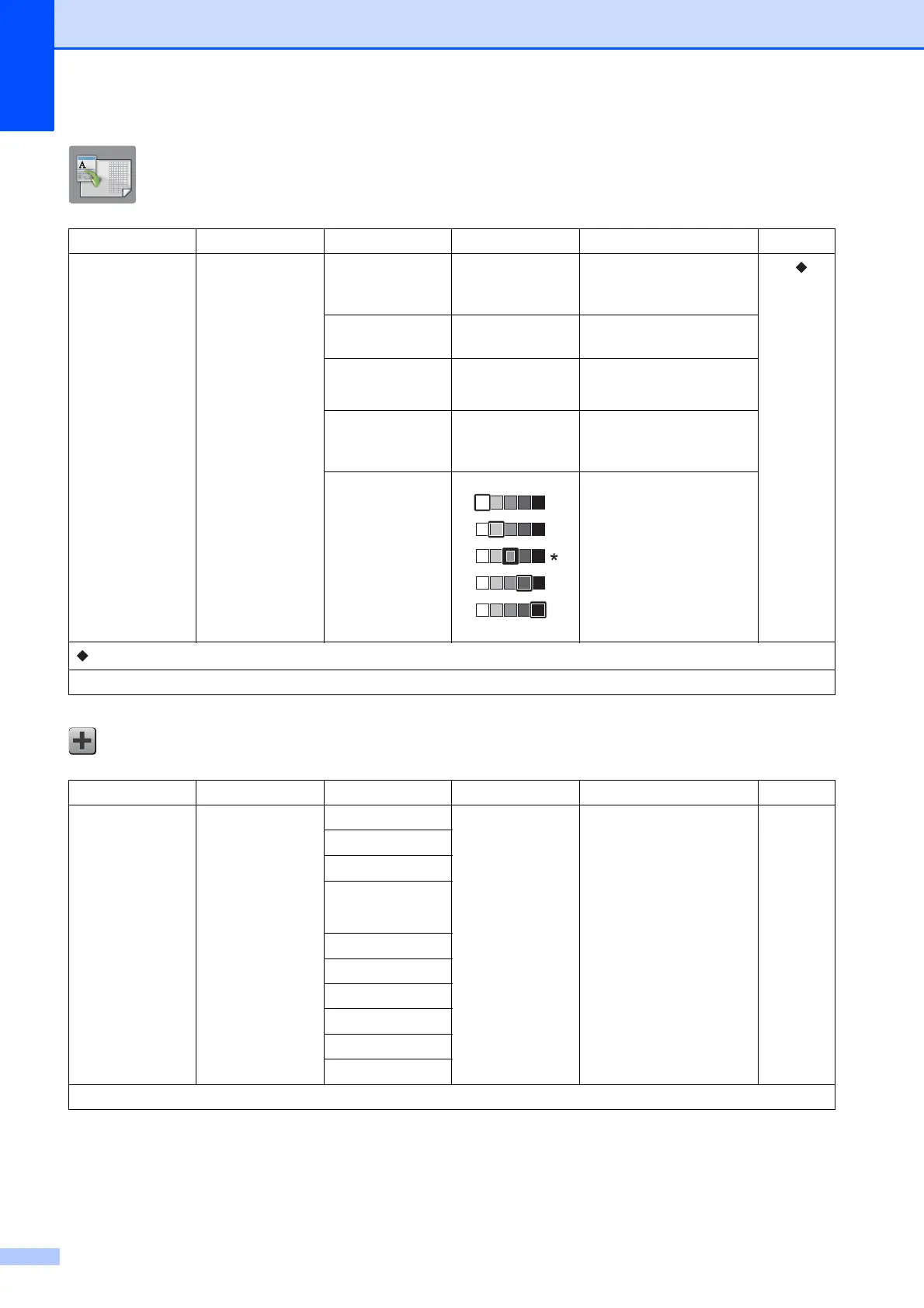 The default settings are shown in Bold with an asterisk.
