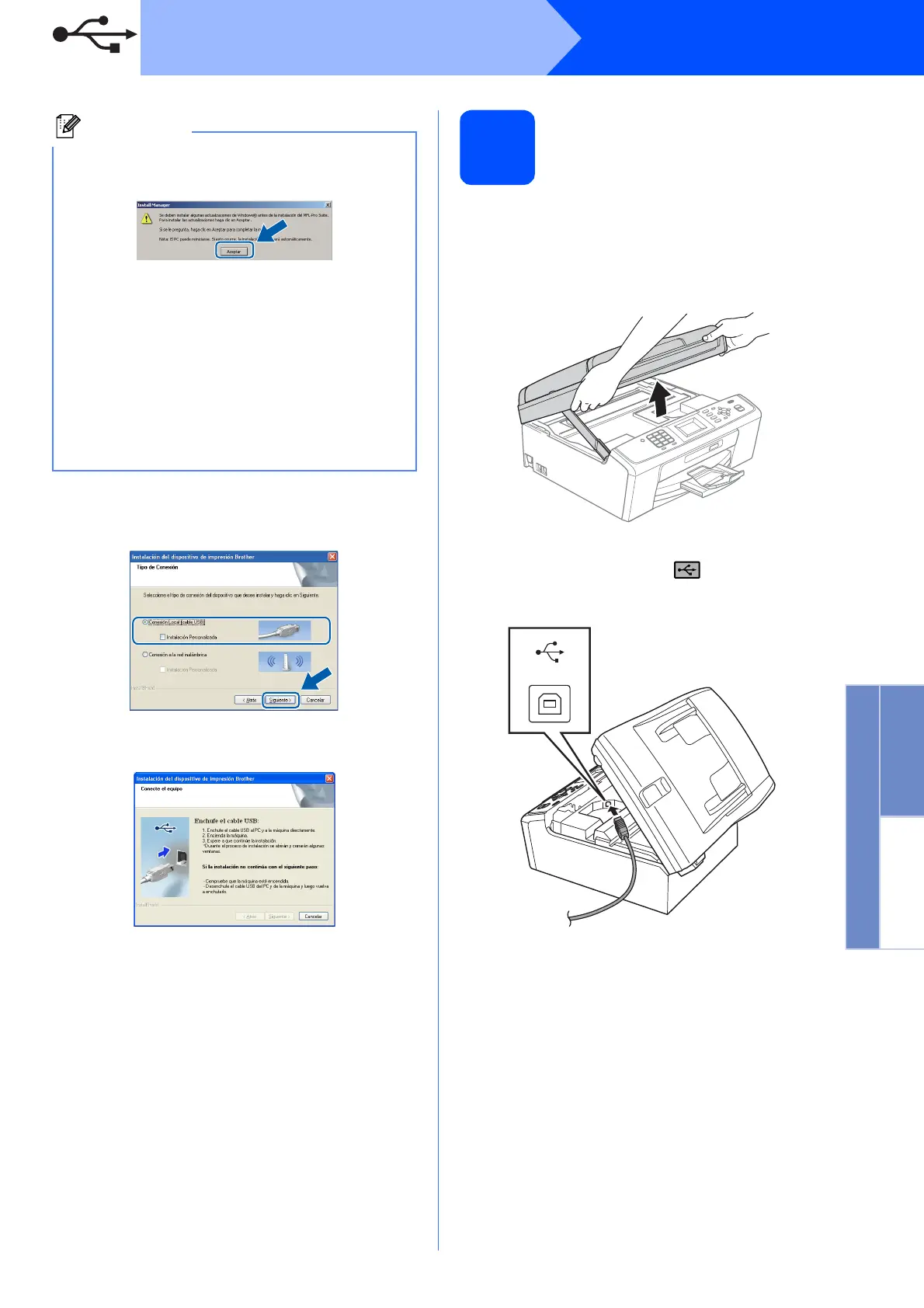 Conexión del cable USB