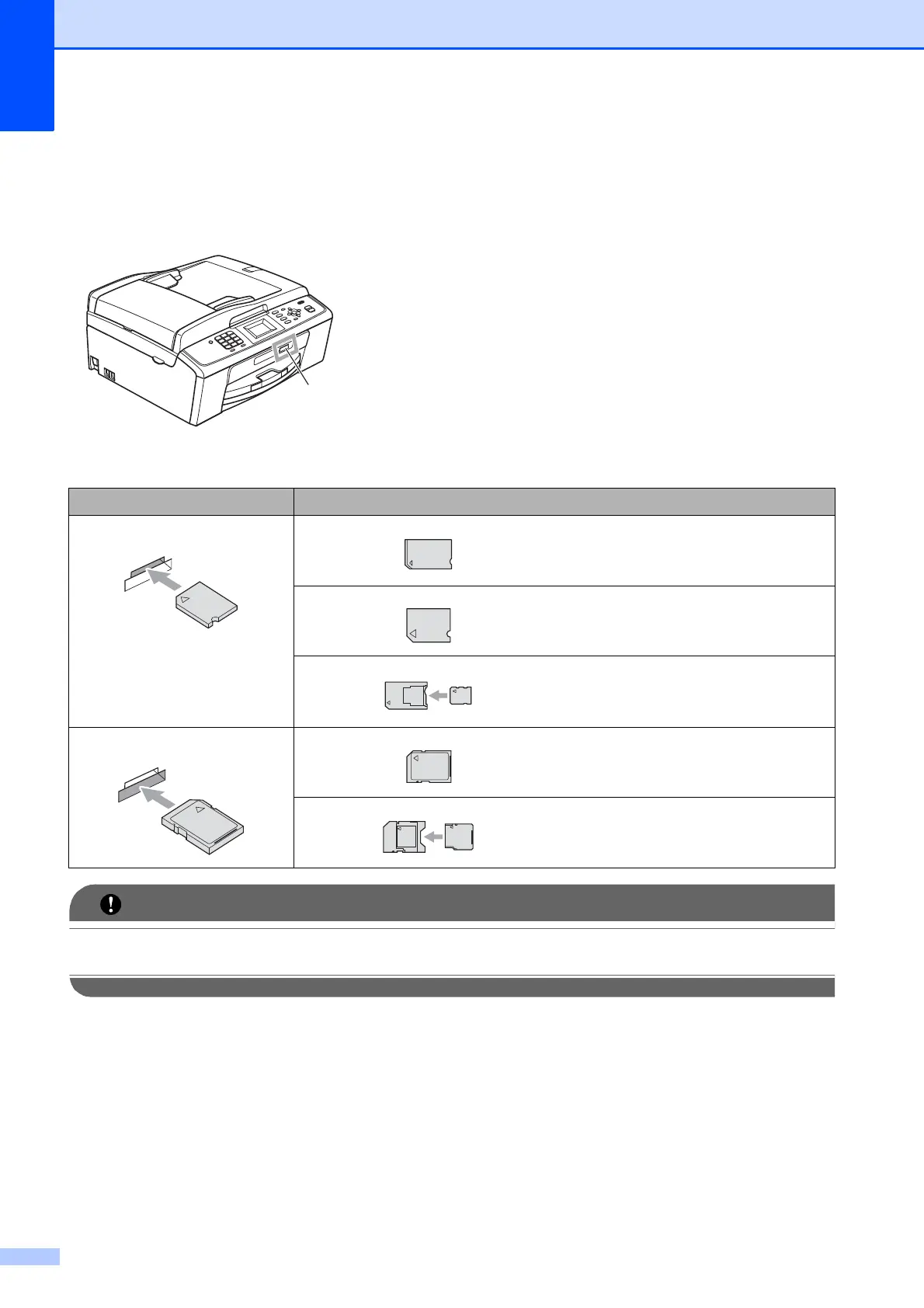 DO NOT insert a Memory Stick Duo™ in the lower SD slot. Doing this, may cause damage to