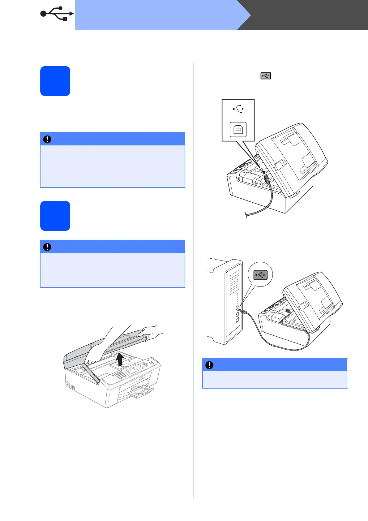 • DO NOT connect the machine to a USB port