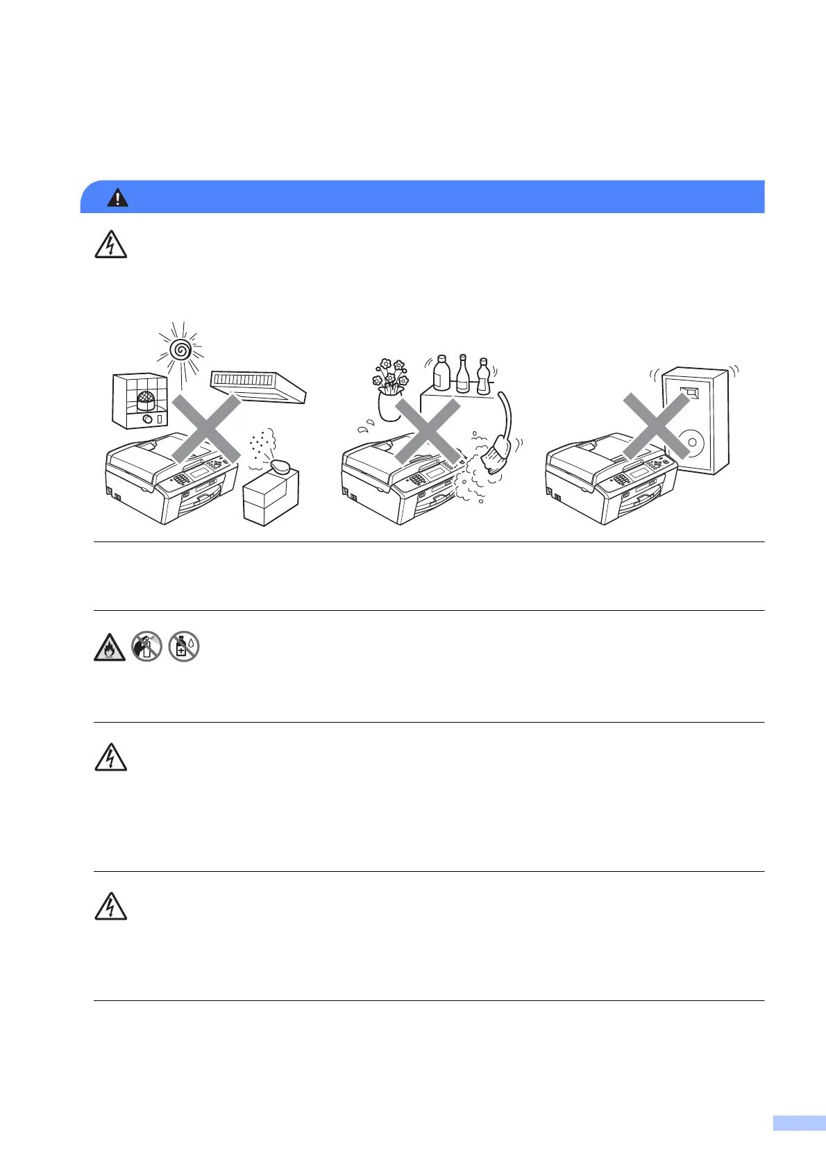 DO NOT place the machine near heaters, air conditioners, water, chemicals or devices that