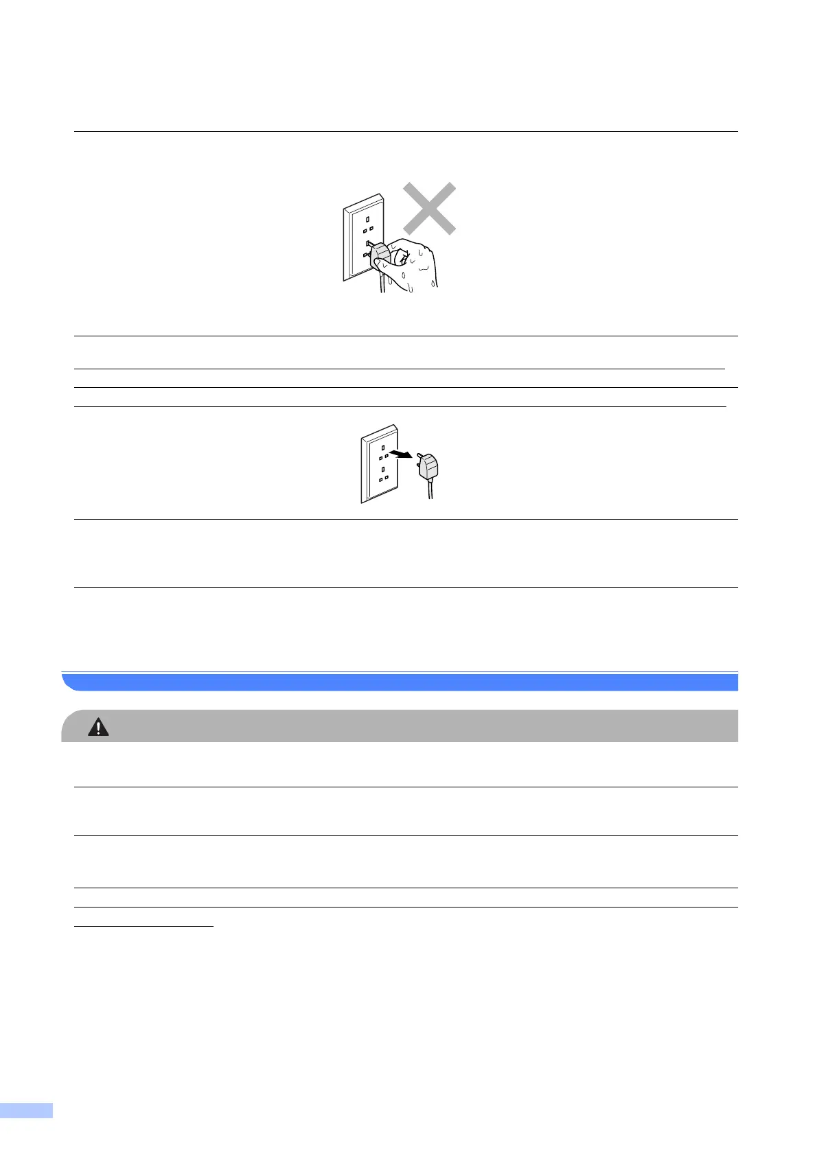 DO NOT handle the plug with wet hands. Doing this might cause an electrical shock.