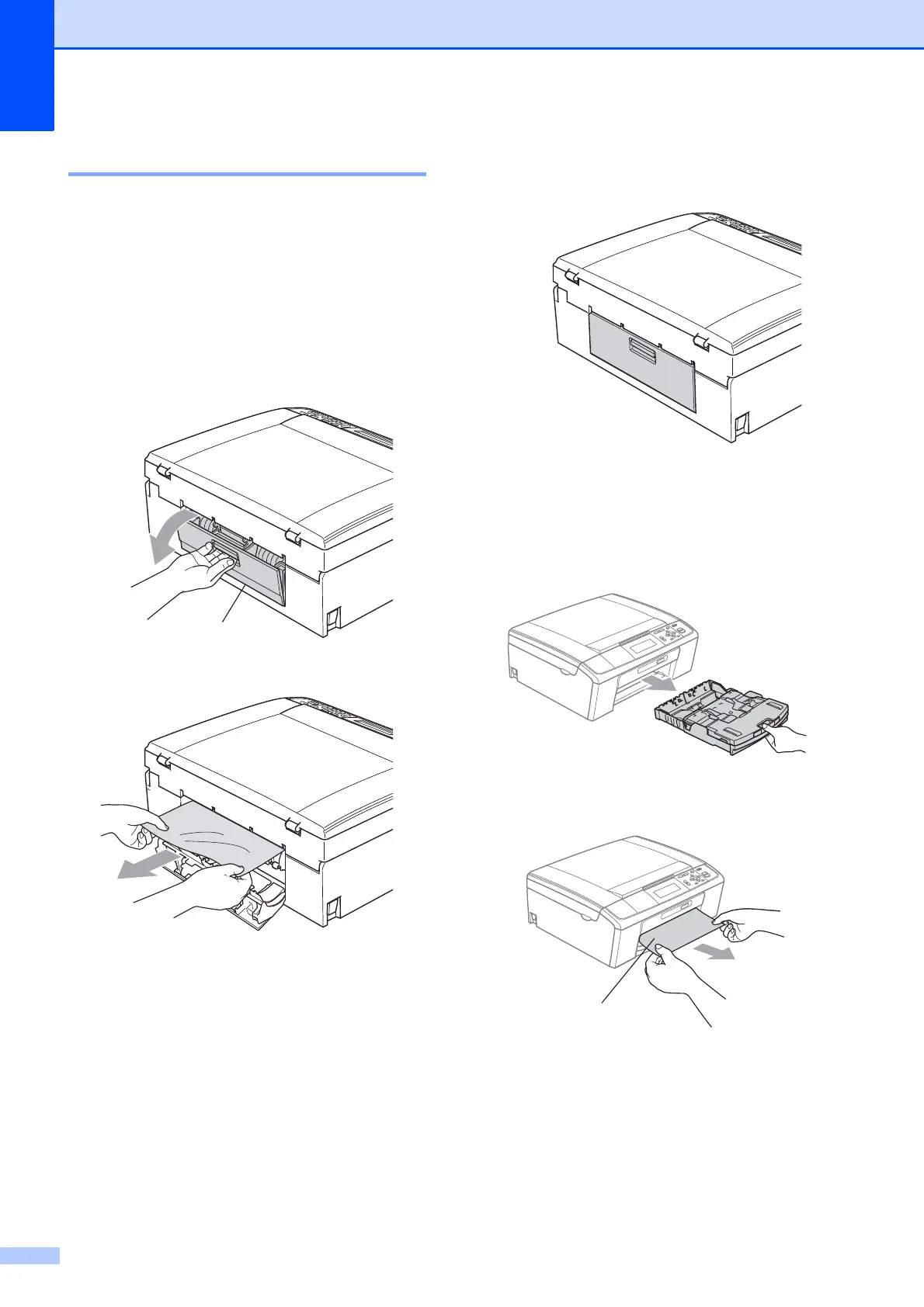 Take out the jammed paper depending on