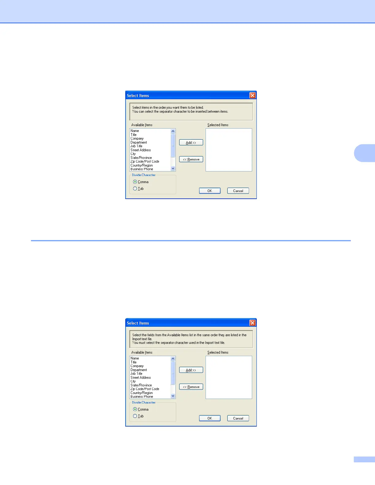 c If you are exporting to an ASCII file, choose Tab or Comma from Divide Character. This chooses Tab