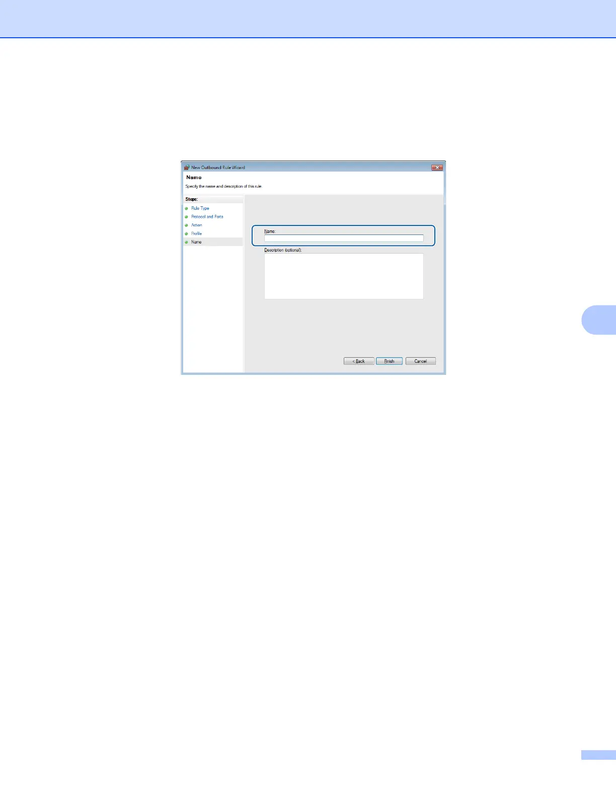q Enter any description in Name: (for example “Brother Scanner” or “Brother PC-Fax”) and click Finish.