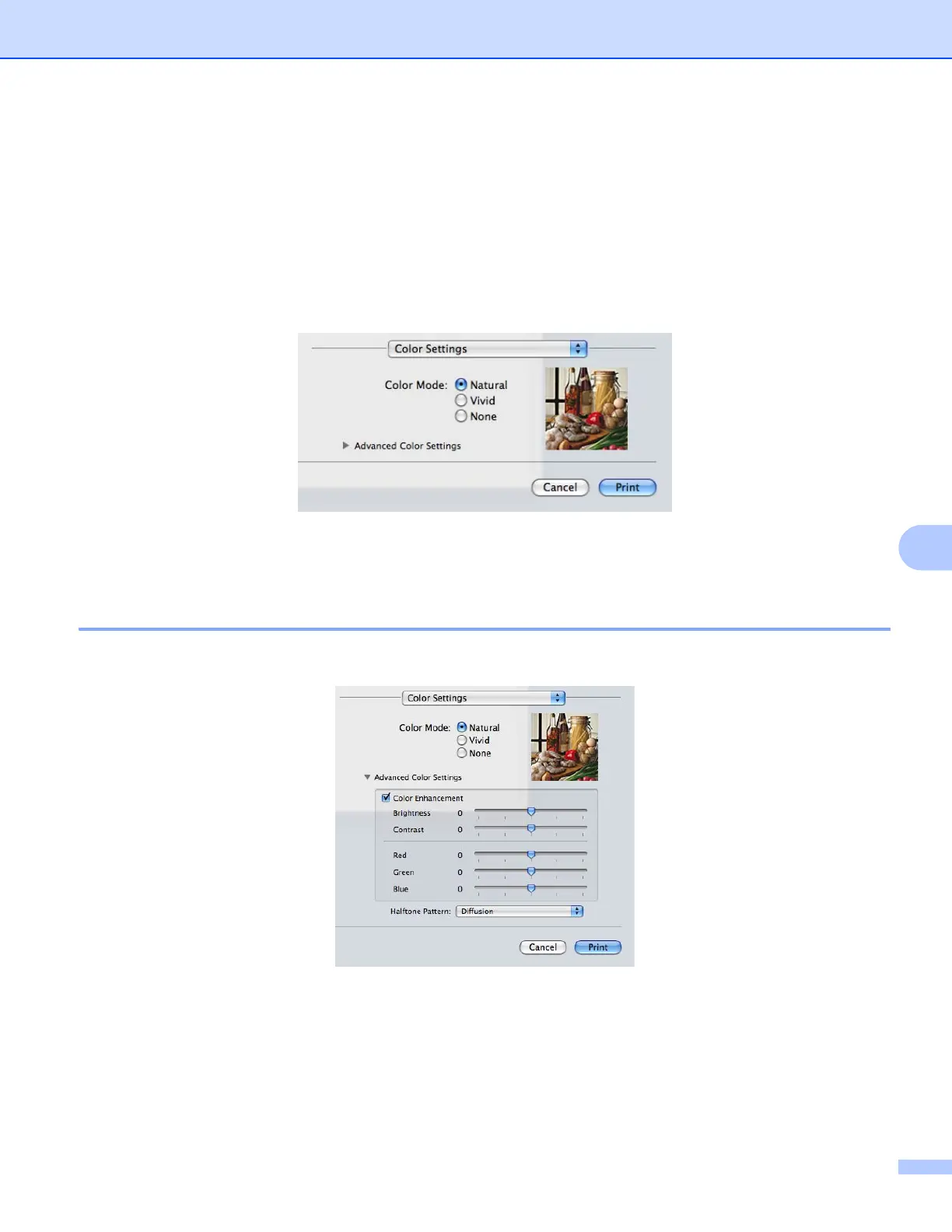 Click Advanced Color Settings to configure the Color Enhancement and Halftone Pattern settings.