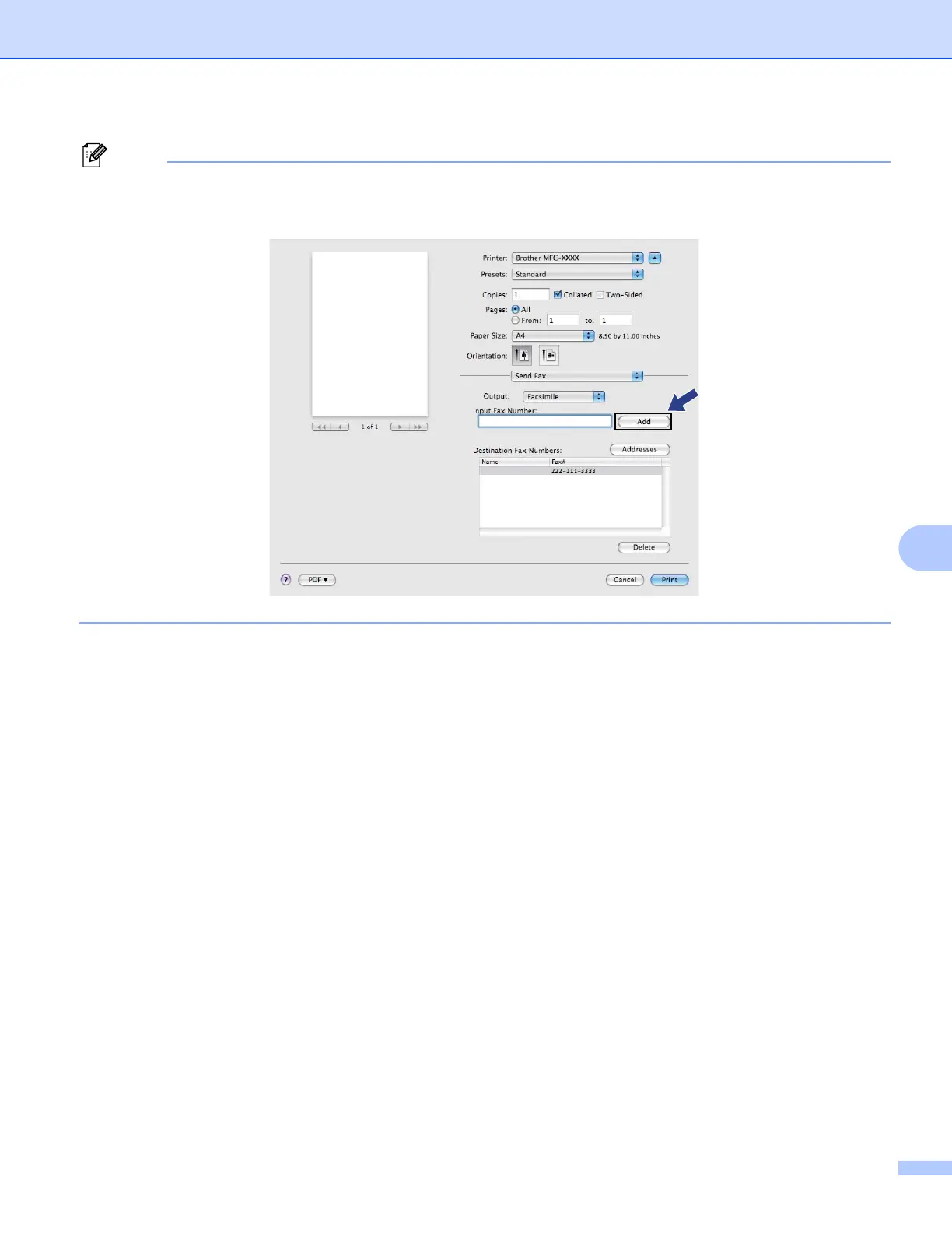 If you want to send a fax to more than one number, click Add after entering the first fax number. The