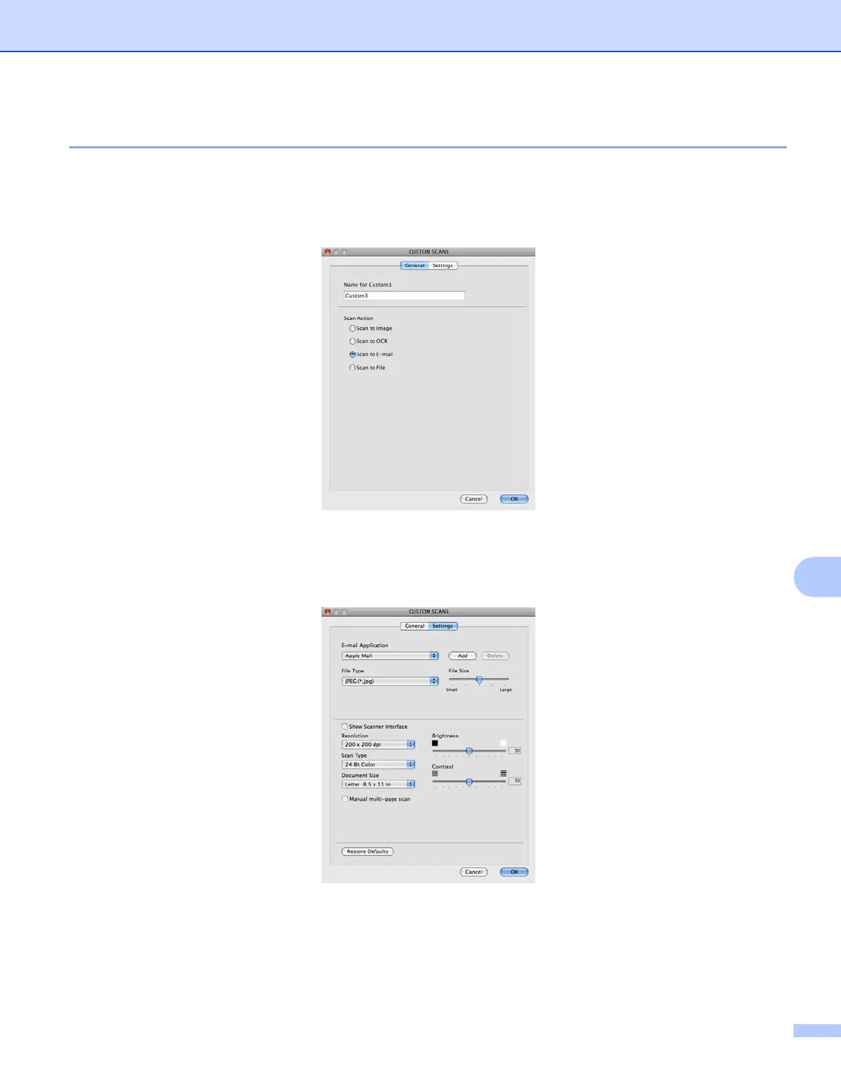 Choose the E-mail Application, File Type, Resolution, Scan Type, Document Size,