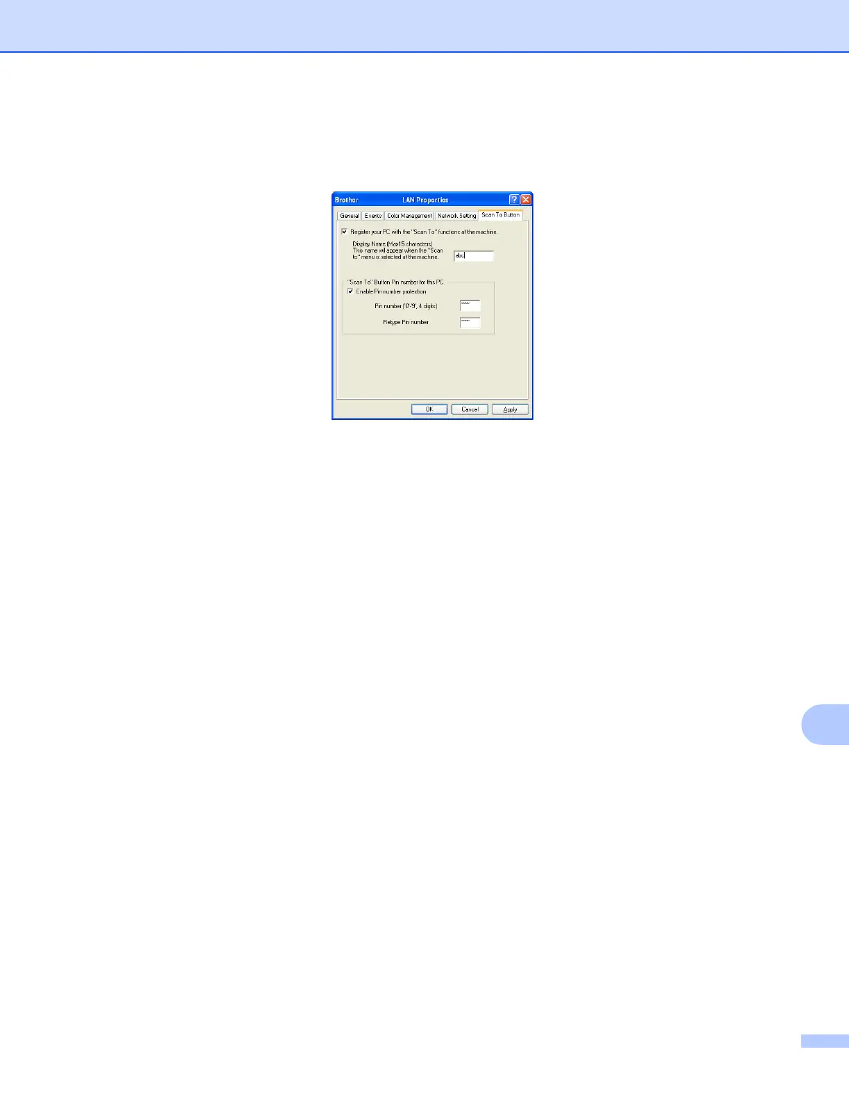 d Click the Scan To Button tab and enter your computer name in the Display Name field. The machine’s