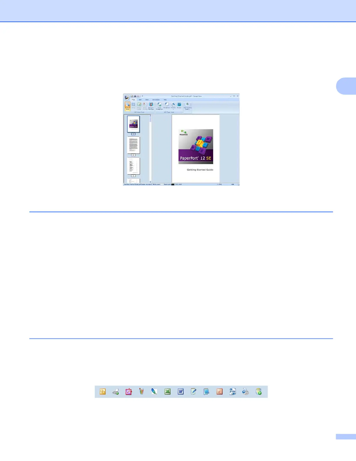 The bar at the bottom of the PaperPort™12SE desktop shows which programs you can use with