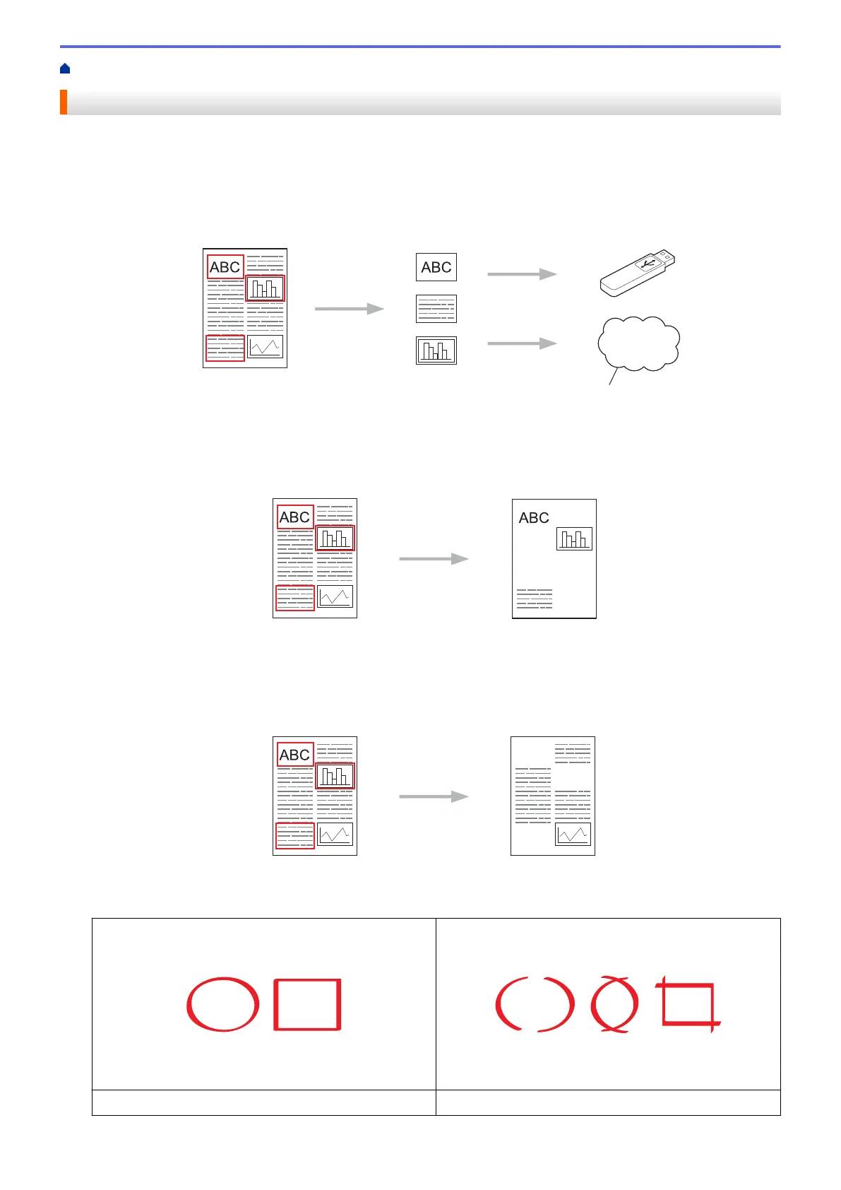 When you outline specific areas of a document using a red pen and then scan the document, the outlined areas
