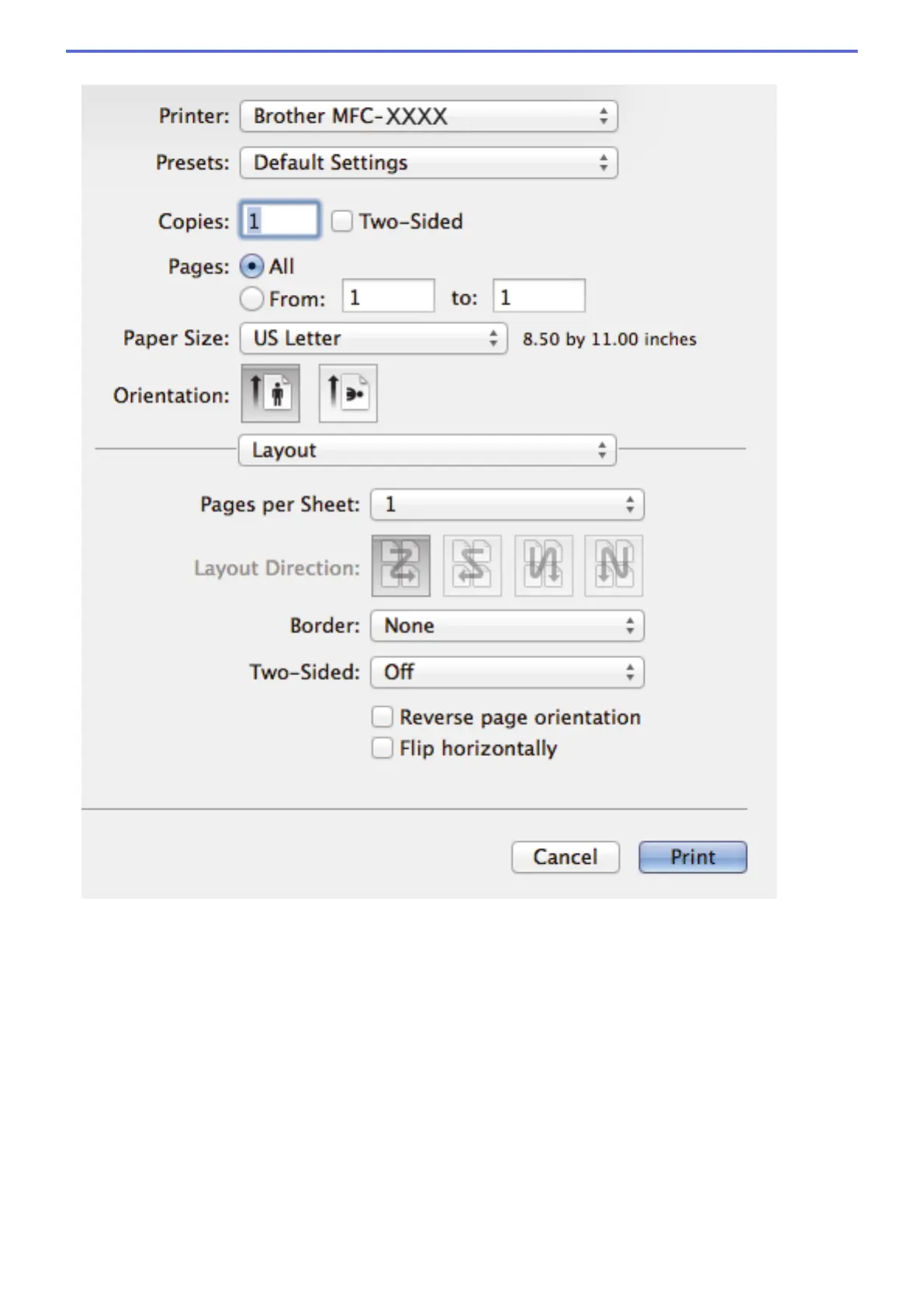 Select this option to reverse the printed image on the page horizontally from left to right.