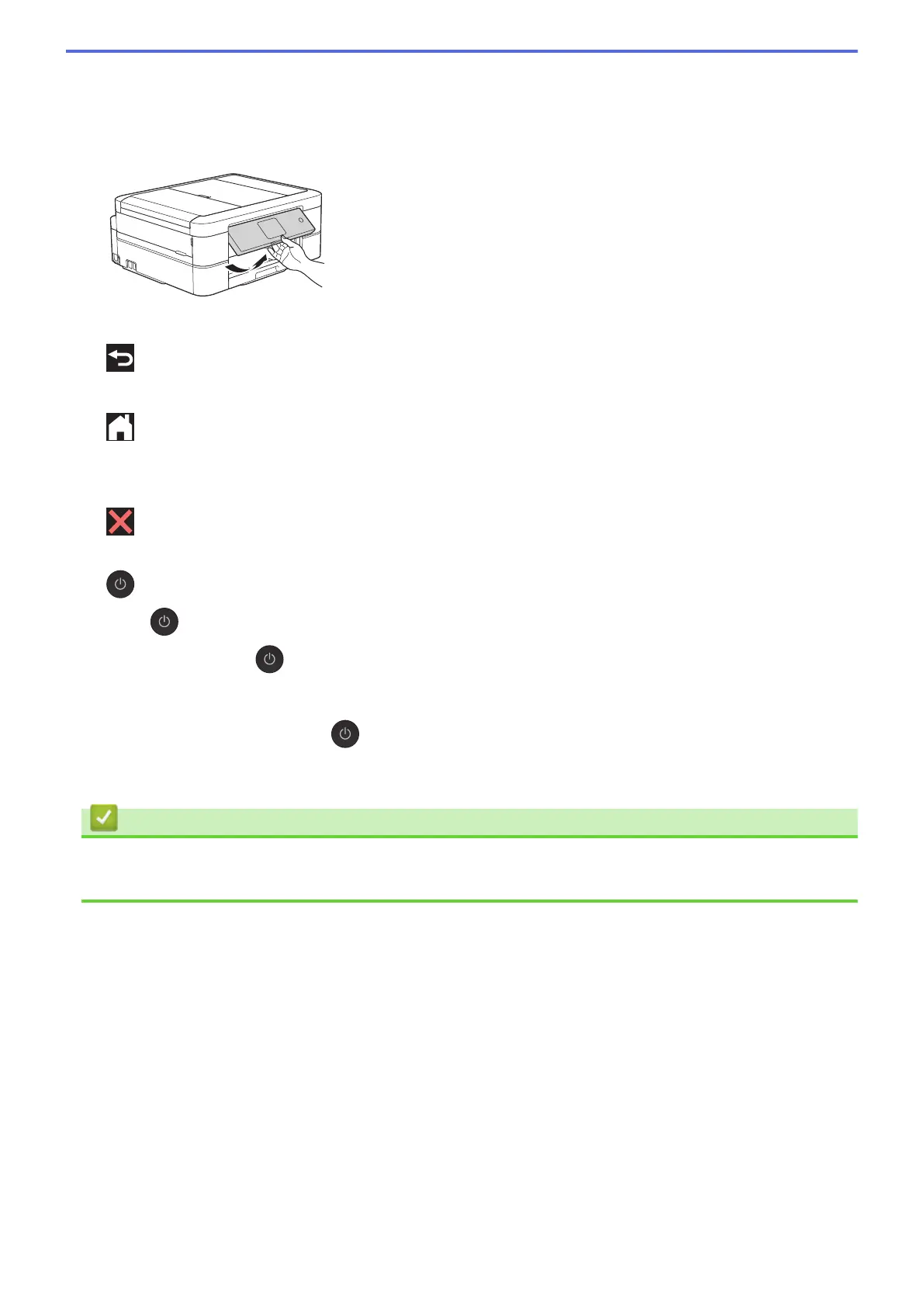 Press and hold down to turn off the machine. The Touchscreen will display [Shutting Down] and will