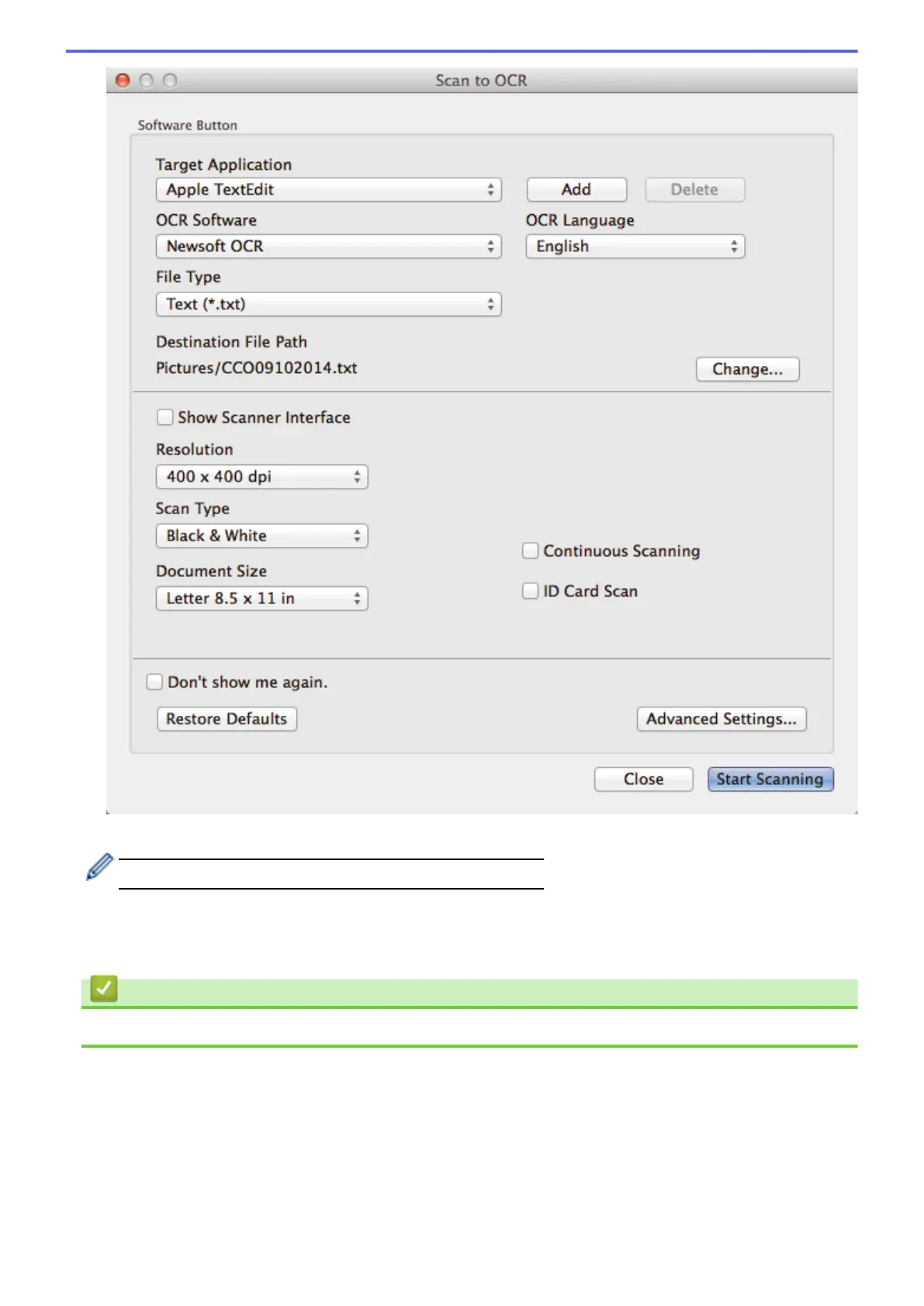 5. Change the scan settings, such as file format, file name, destination file path, resolution, or color, if needed.