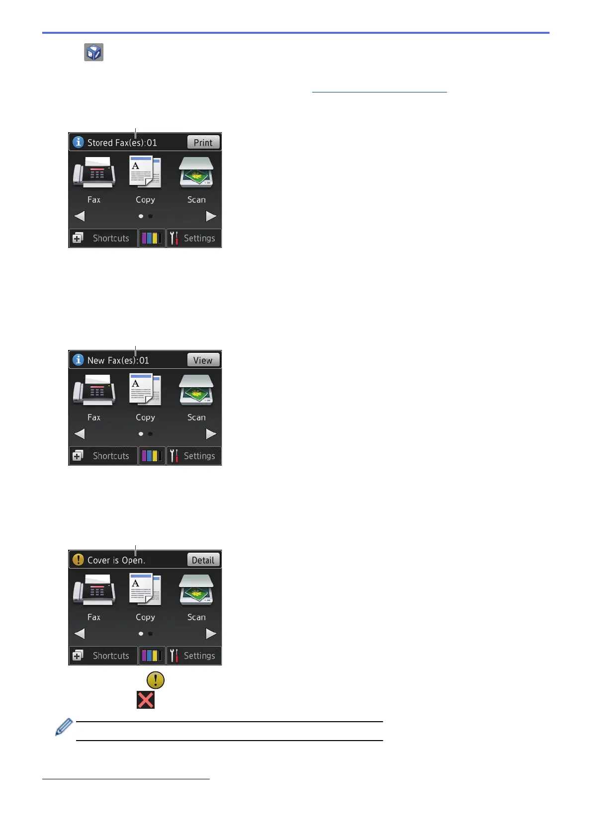 The warning icon appears when there is an error or maintenance message; press [Detail] to view it,