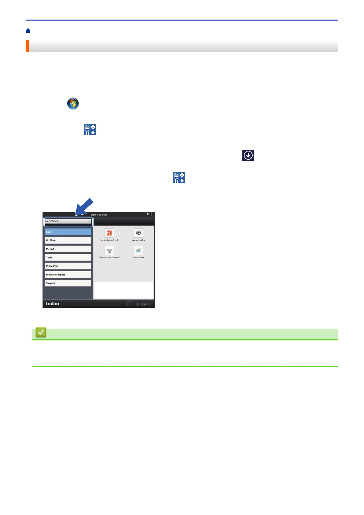 Tap or click (Brother Utilities) either on the Start screen or the desktop.