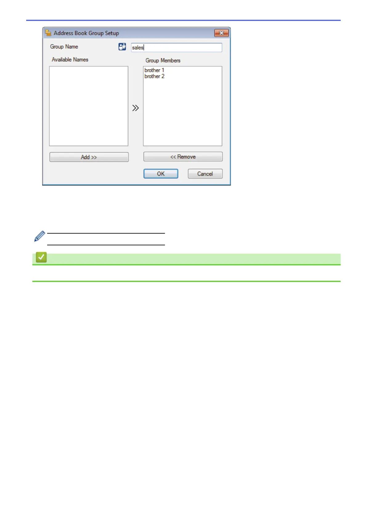 4. In the Available Names field, select each name you want to include in the group, and then click Add >>.