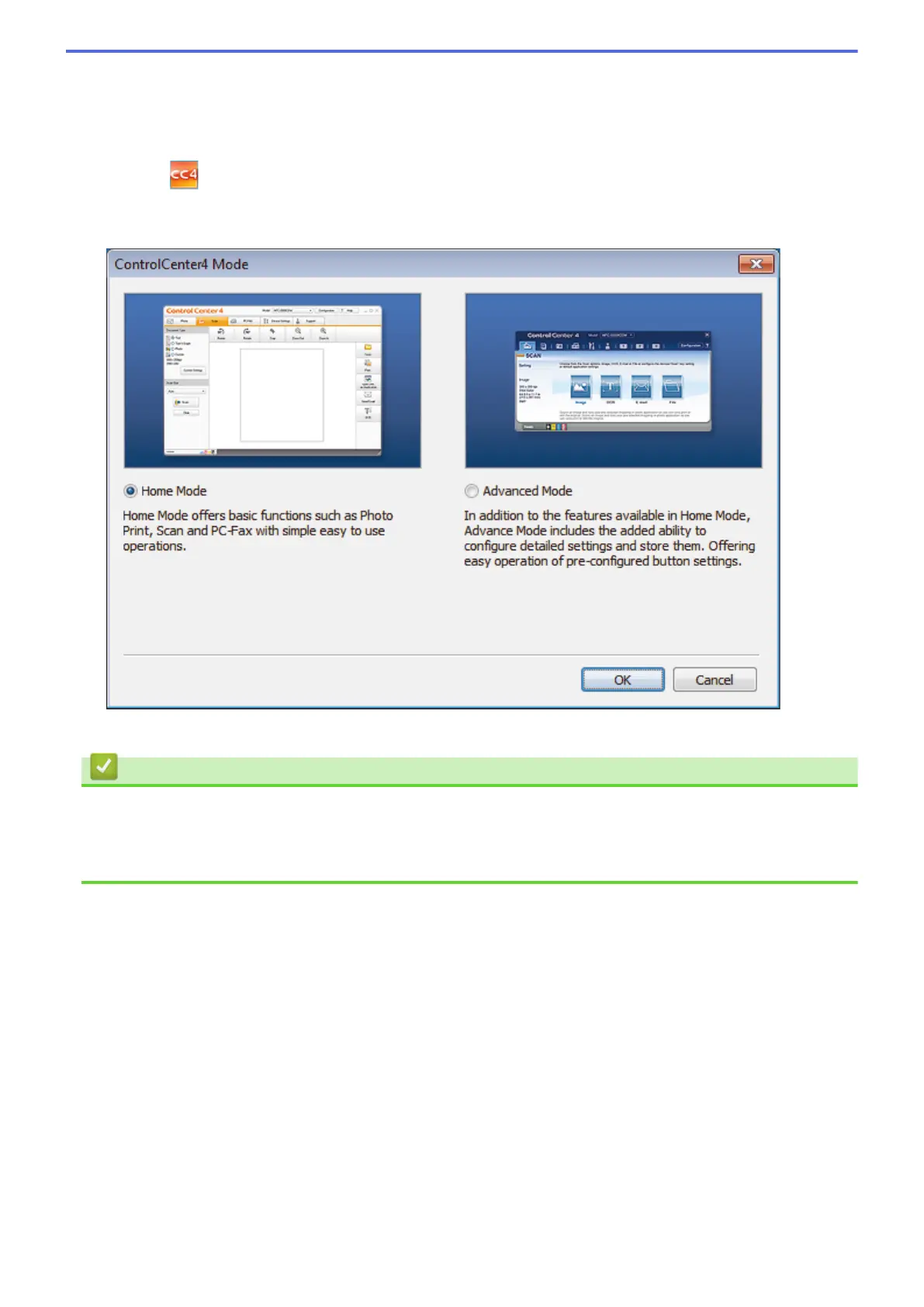 3. The mode selection dialog box appears. Select either the Home Mode or Advanced Mode option.