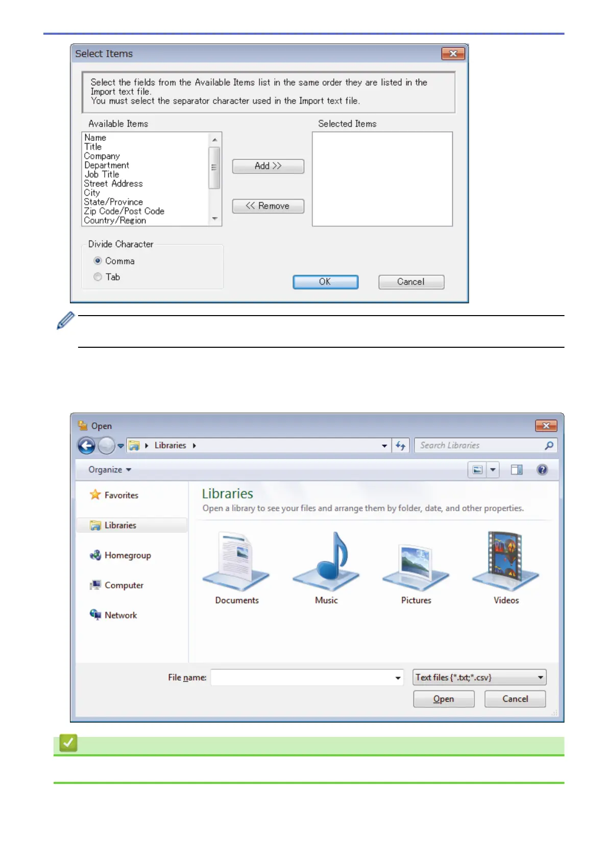 You must select and add fields from the Available Items list in the same order they are listed in the import