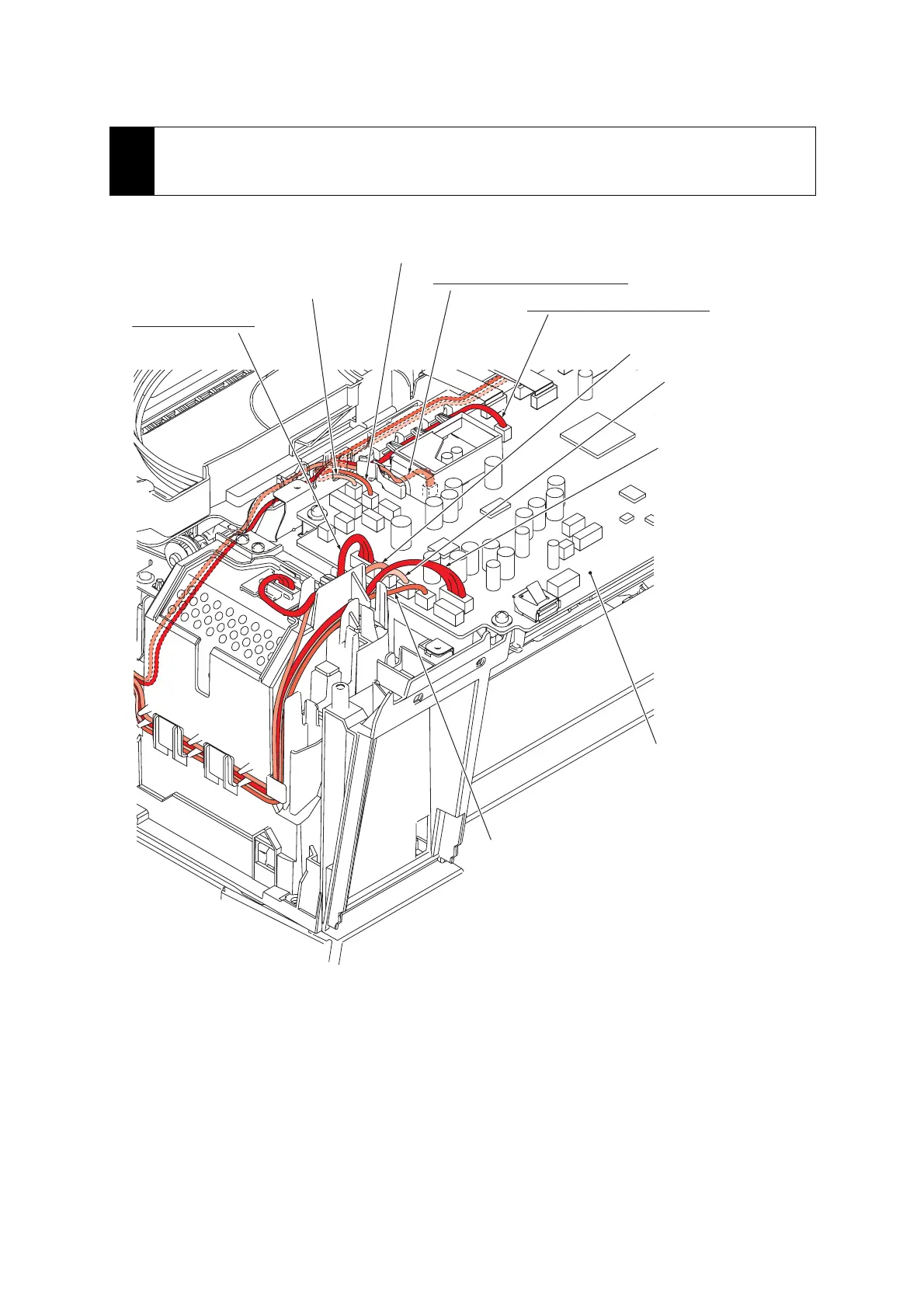 Front left corner of the lower cover: Power supply harness, ASF motor harness, Carriage motor harness,