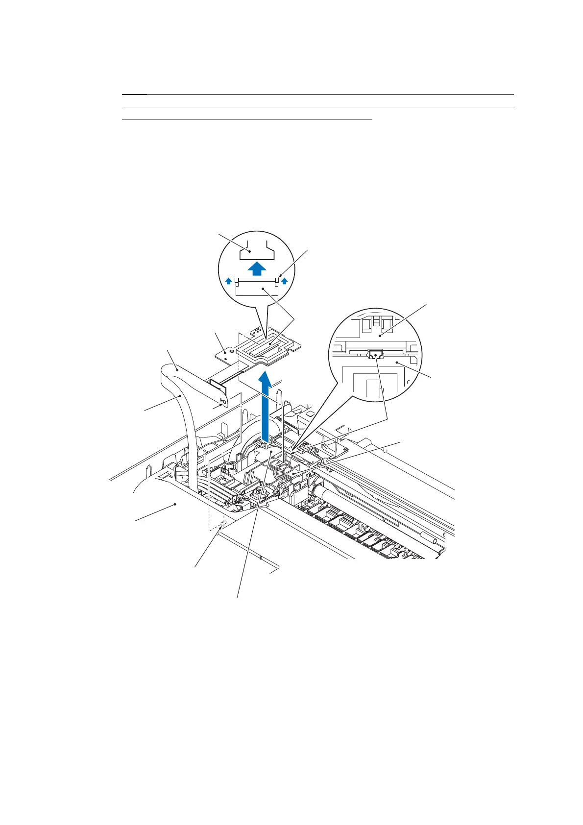(10)Slightly pull up the front end of the carriage PCB to release the PCB from the lock spring,