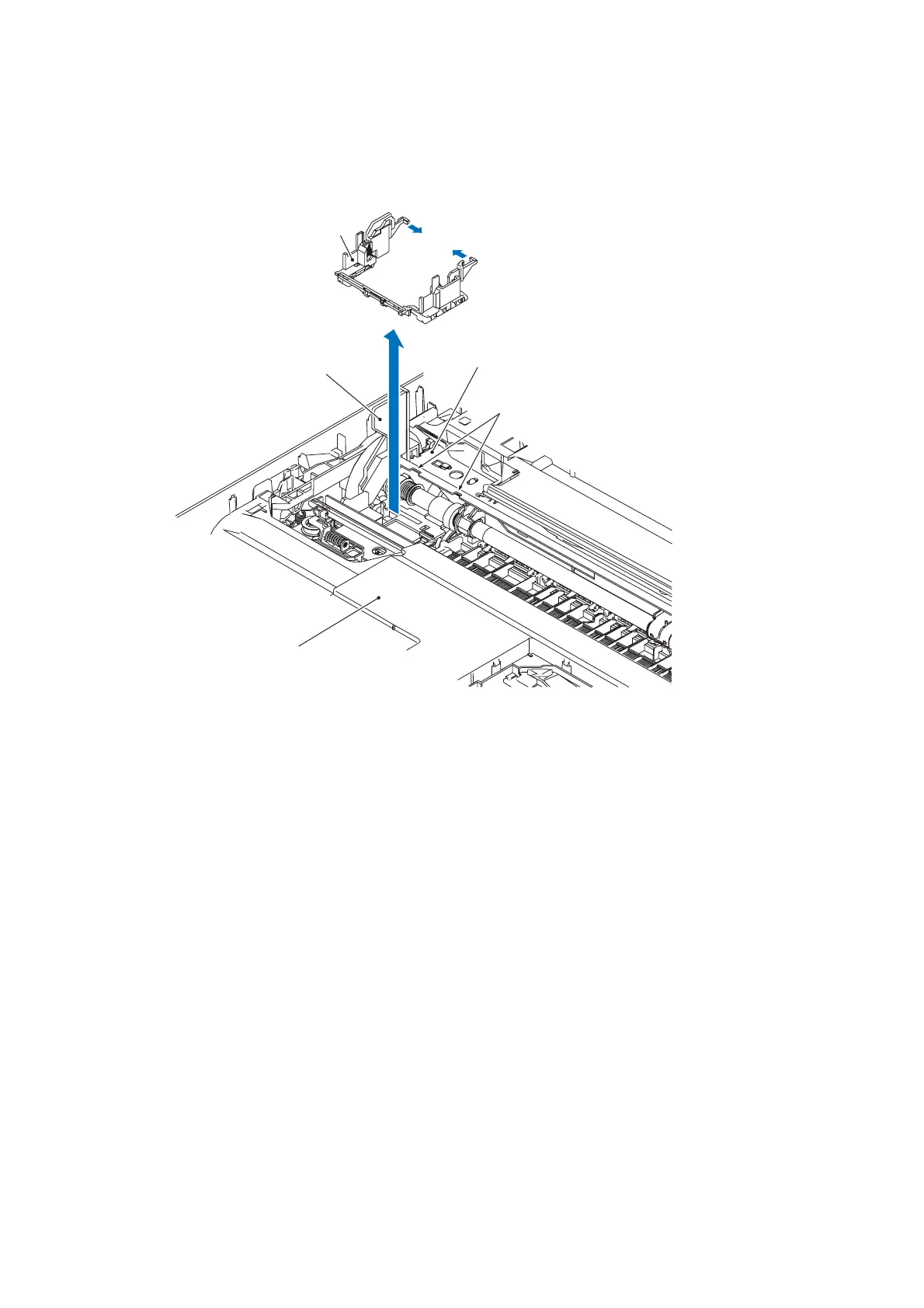 (22)Press the rear ends of the leveller roller (LR) ASSY inwards and take them out through the