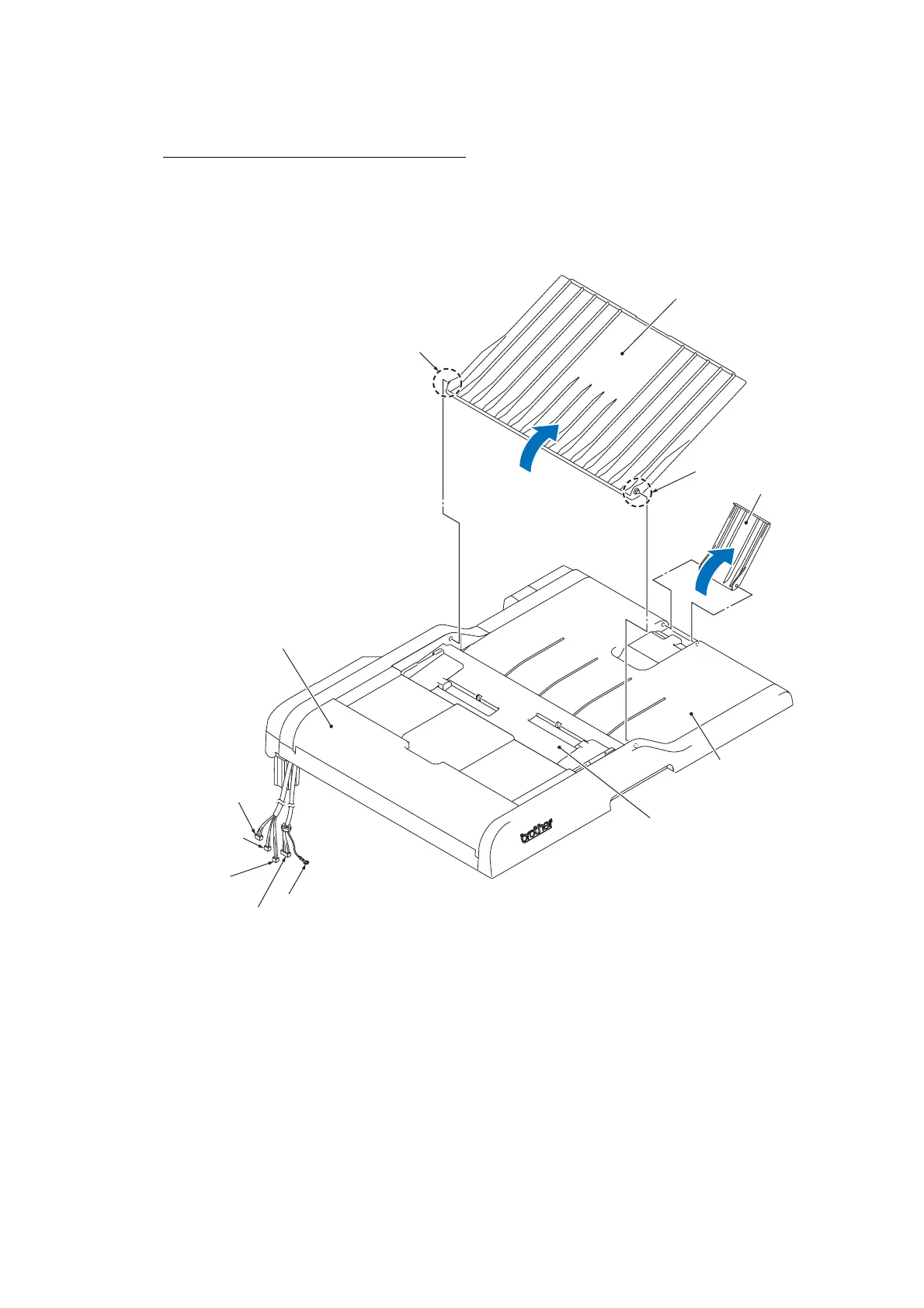 (1) Open the document support, warp it slightly, and remove its front and rear bosses from the
