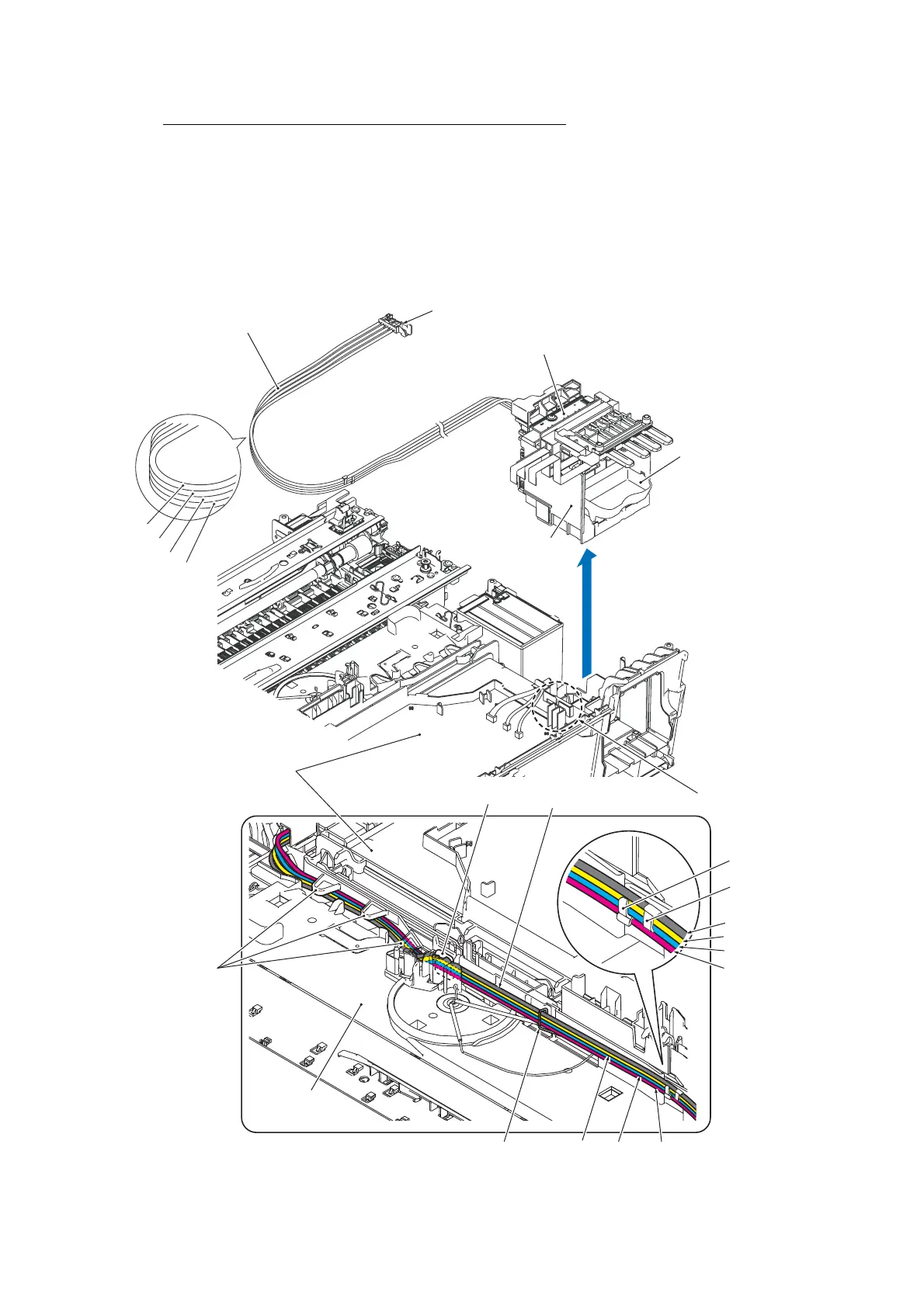 (3) Remove the ink supply tubes from the head/carriage unit, by performing steps (12) through