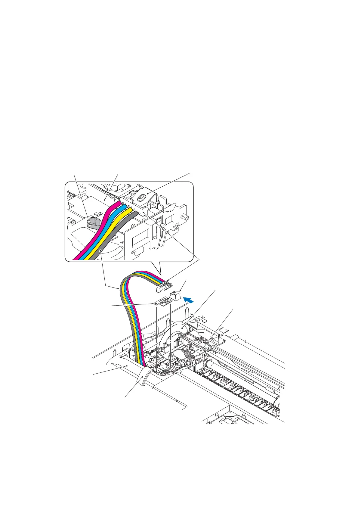 • After mounting the ink refill ASSY, route all of the four ink supply tubes through the tube