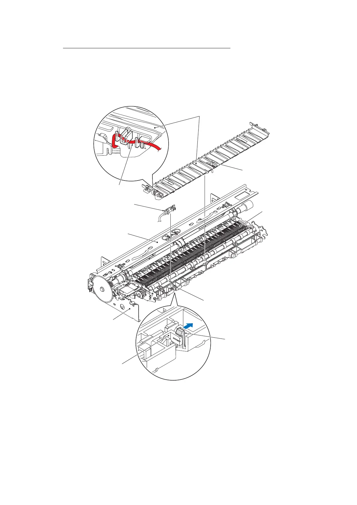 (12)Release the switchback paper sensor harness from the cable guide on the left end of the