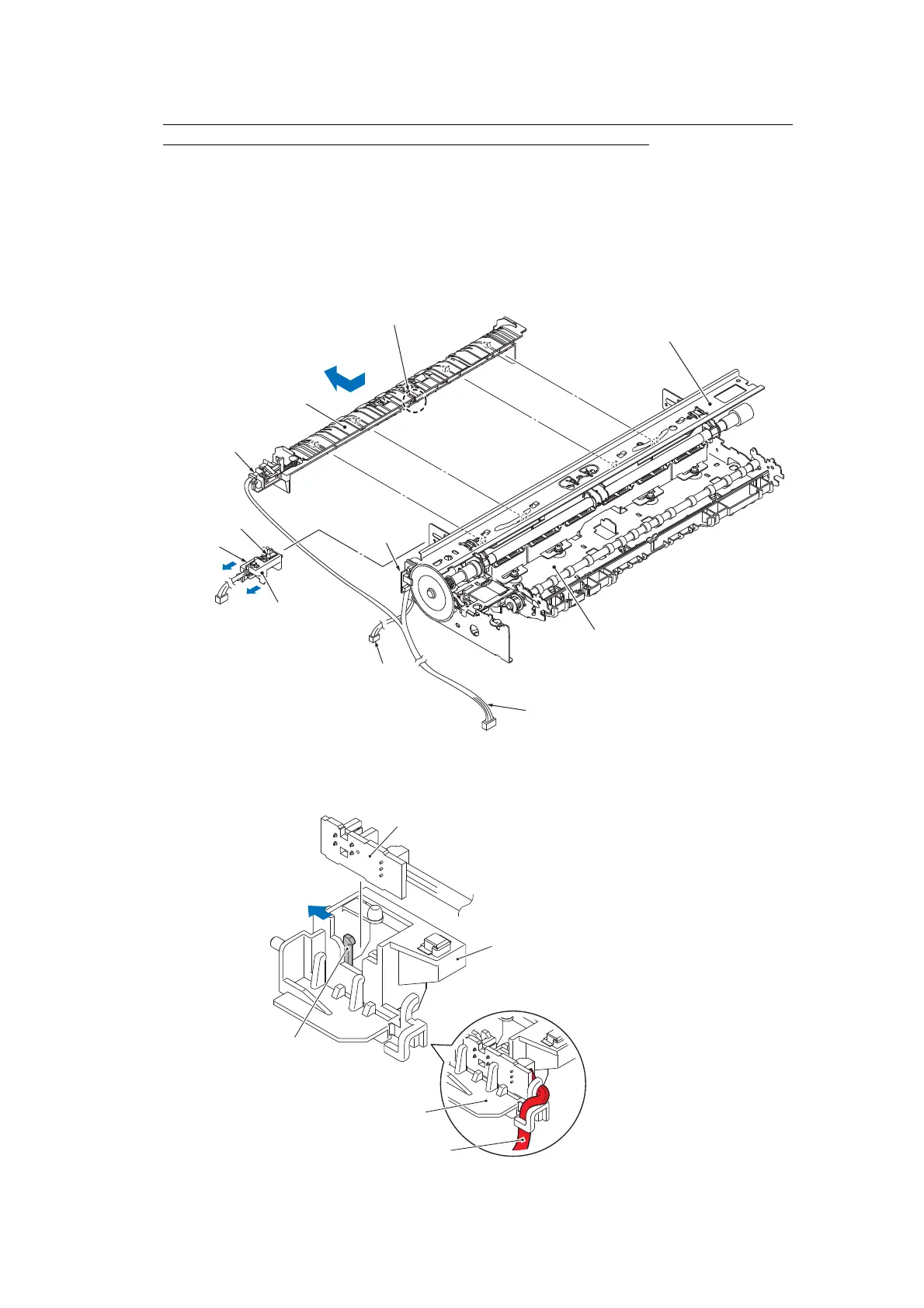 Inner chute ASSY, registration sensor PCB ASSY and actuator, PF encoder/PF sensor